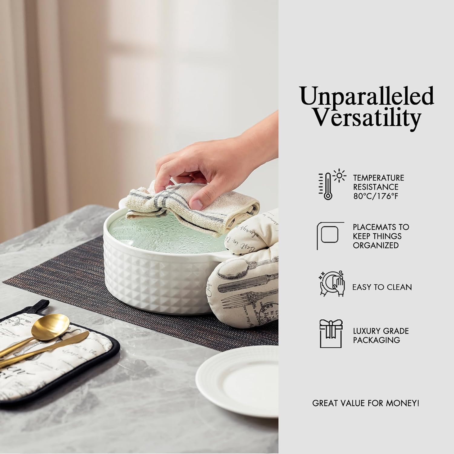- Elegant and Practical Design: Featuring a luxurious woven texture with precision cutting, Onebento placemats bring a touch of sophistication to any dining setting. Their versatile design suits both indoor and outdoor use, making them ideal for daily meals, special occasions, or as thoughtful gifts for housewarmings, weddings, and more. With place mats on the table, your table setting feels extra inviting – for both everyday meals and parties.
