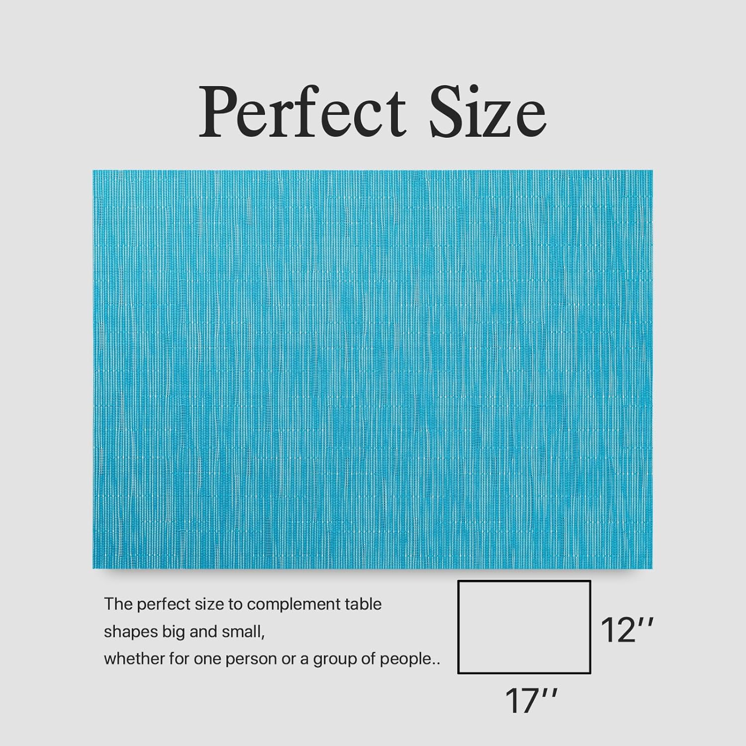 Placemats Set of 6 - Easy Clean Woven Vinyl Placemats for Dining Table, Indoor/Outdoor Place Mats, Washable PVC Table Mats(Teal Blue)