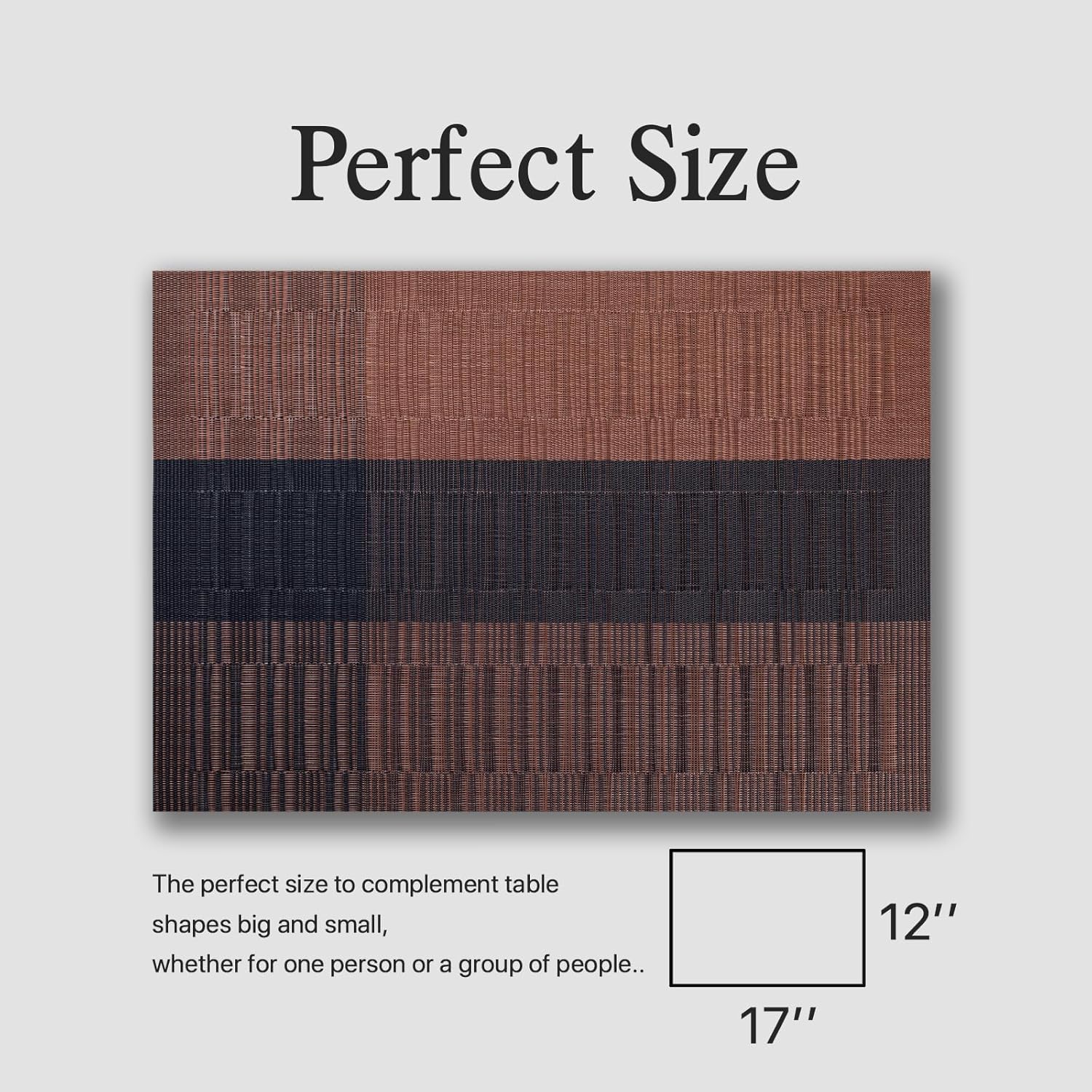 Placemats Set of 4 - Easy Clean Woven Vinyl Placemats for Dining Table, Indoor/Outdoor Place Mats, Washable PVC Table Mats (Ombre Brown Black)