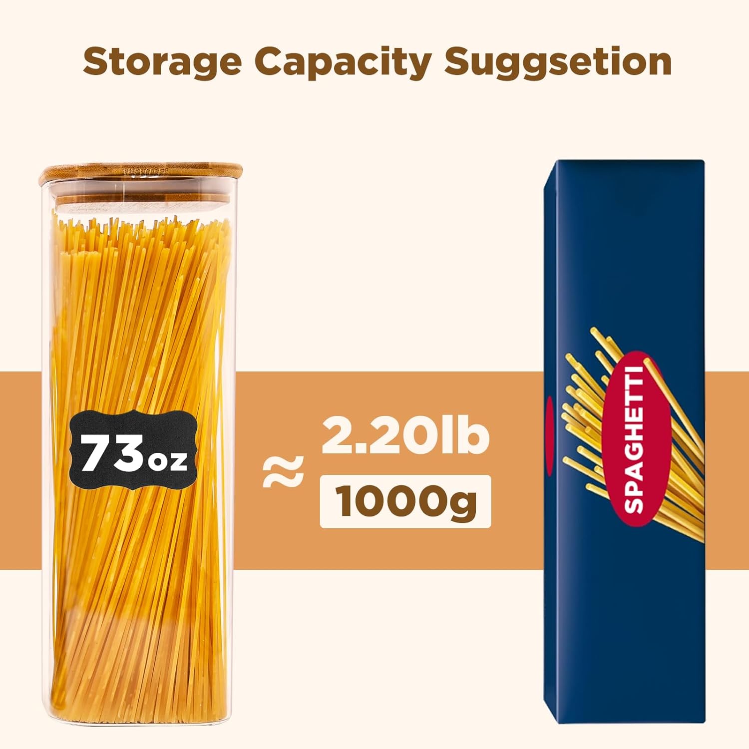 - [Multi functional Storage Jar] Glass pantry storage containers is the perfect solution for storing a variety of items. Glass jar with lid can be used to store grains, nuts, coffee, flour, spices, etc., providing ample space while maximizing cabinet space. Keep the kitchen tidy while adding a touch of elegance.