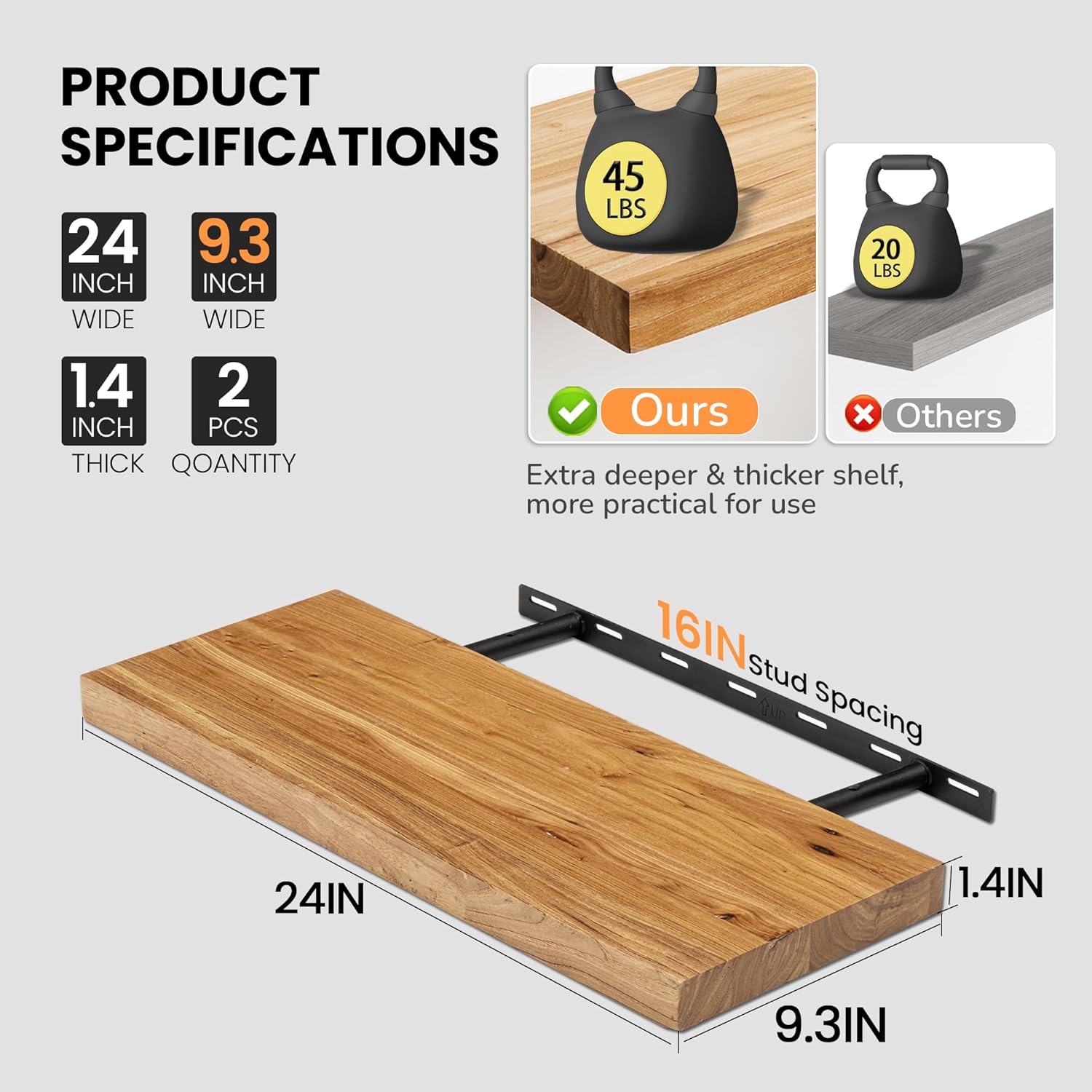 - EASY INSTALLATION: Our floating shelf bracket aligns with standard 16" wall studs and sits flush for a clean finish. Each shelf comes with detailed instructions, a magnetic level, self-tapping drywall anchors, and screws. Whether you're new to this or experienced, you can securely mount these rustic shelves in minutes
