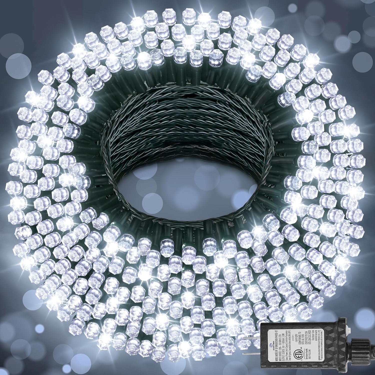 158 FT 480 LED Christmas Tree Lights, String Lights Green Wire with 8 Modes, Timer and Memory, Plug in Outdoor Waterproof Twinkle Lights for Indoor Yard Xmas Holiday, Cool White
