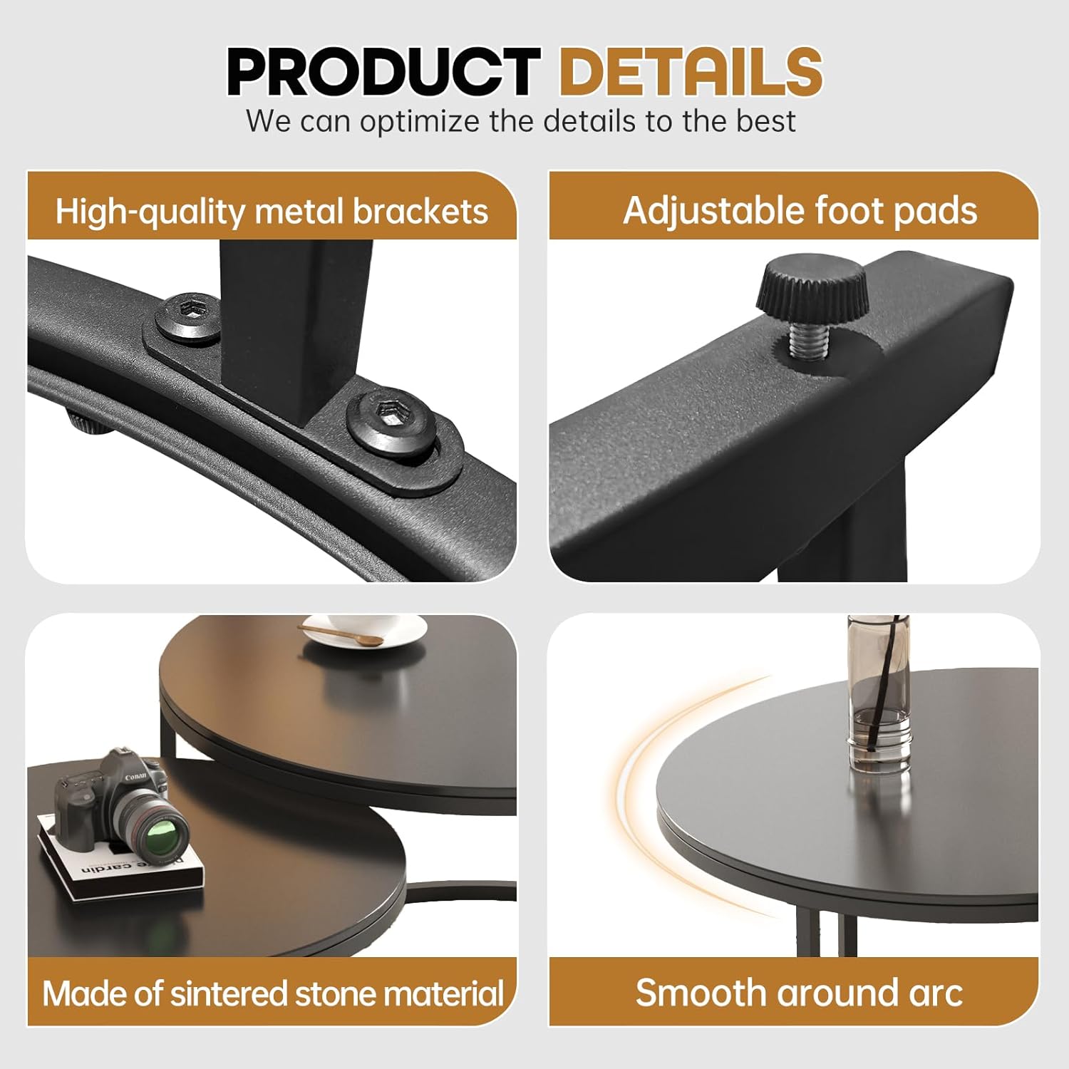 Coffee Tables for Living Room, Black Modern Decorative Coffee Center Table Set of 2, Sintered Stone Top & Sturdy Metal Base,for Living Room, Bedroom, Apartment