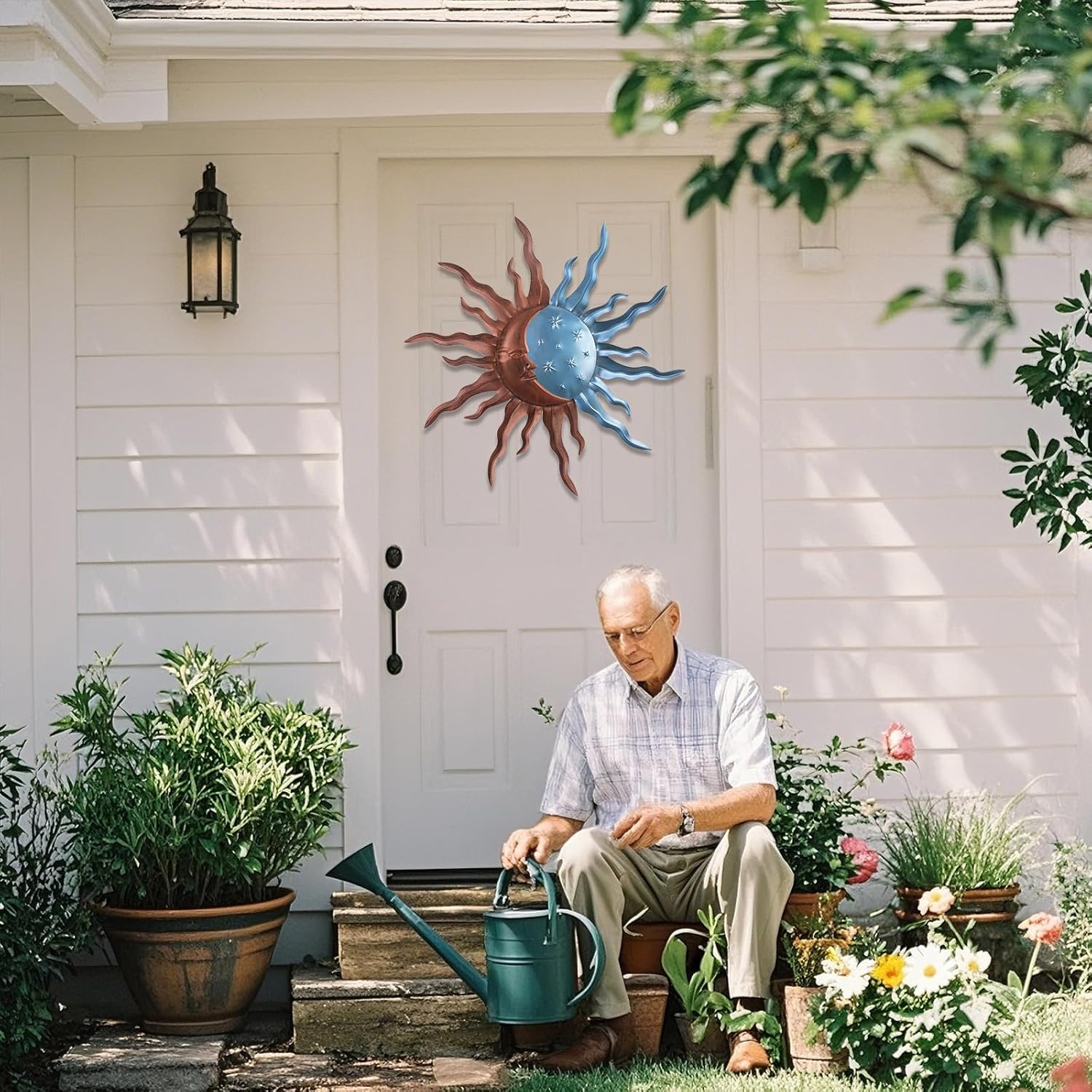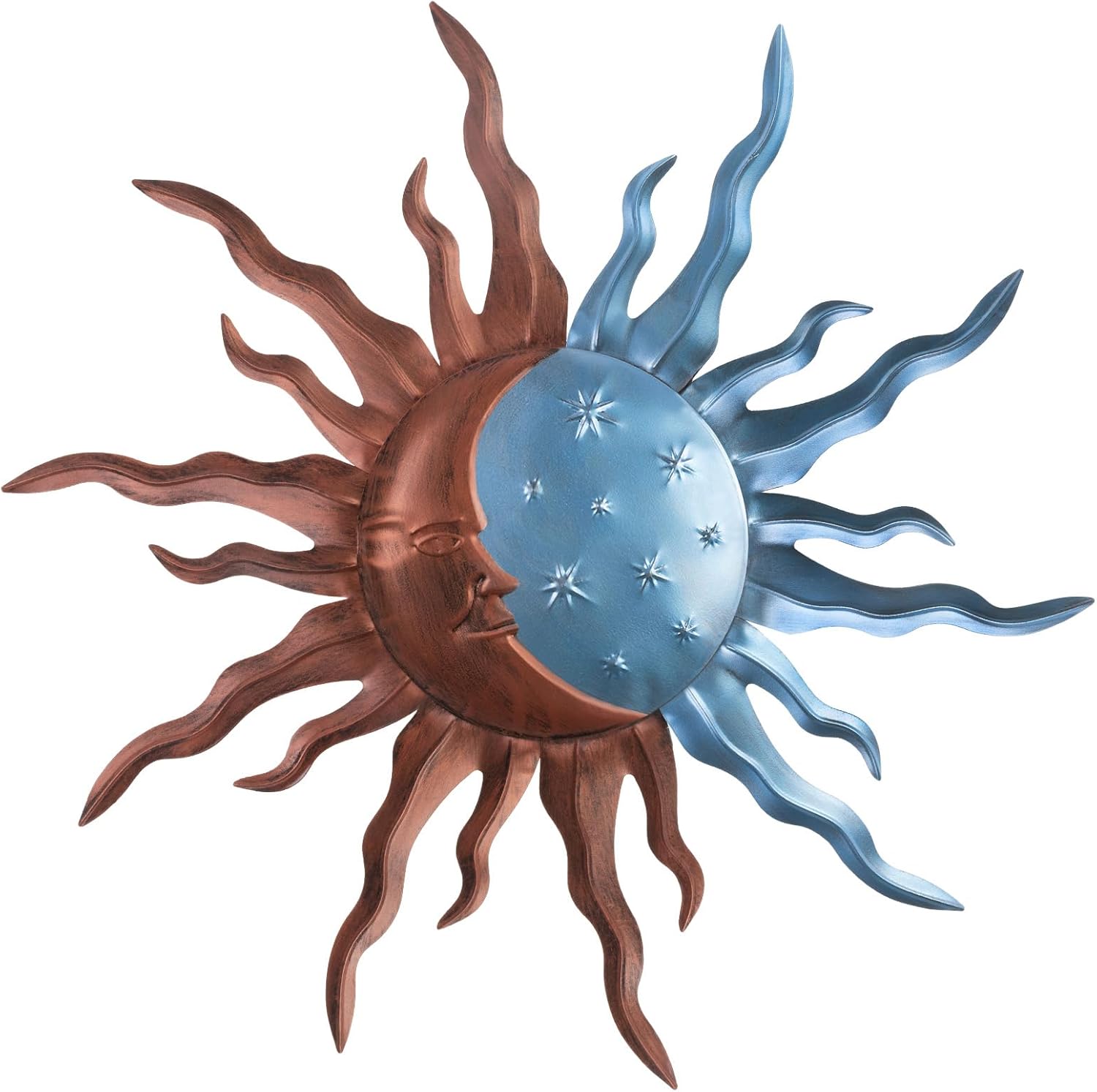 - Sun Moon Wall Art: Our outdoor Metal sun wall decor captures the harmonious partnership of the stars sun and moon in one enchanting composition, offering a unique decor metal wall art that adds a touch of magic to any outdoor or indoor space. can make ordinary walls vibrant and dynamic. This sun wall art is the perfect addition to living rooms, bedrooms, kitchens, offices, hallways, decks, gardens, patios, fences and entryways.