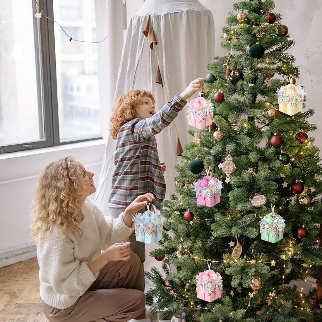 Christmas tree gift box ornament set,3 Pieces Macaron Color Candy Gift Hanging Ornaments for Christmas, New Year, Easter, Birthday (PINK GREEN YELLOW)