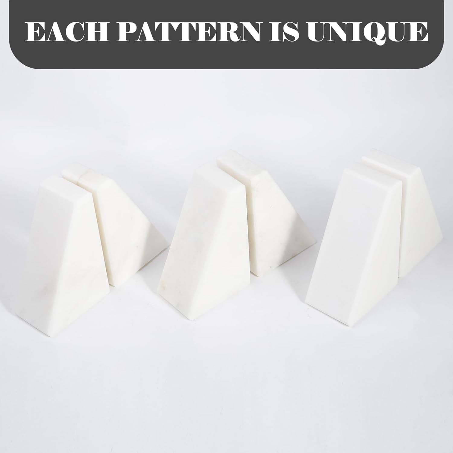 Marble Book Ends Decorative, Unique Bookends for Shelves, White Stone Bookends Holds Heavy Books, Weighted Book Holder Stopper for Home Office Desk Bookshelf Decoration, Set of 2