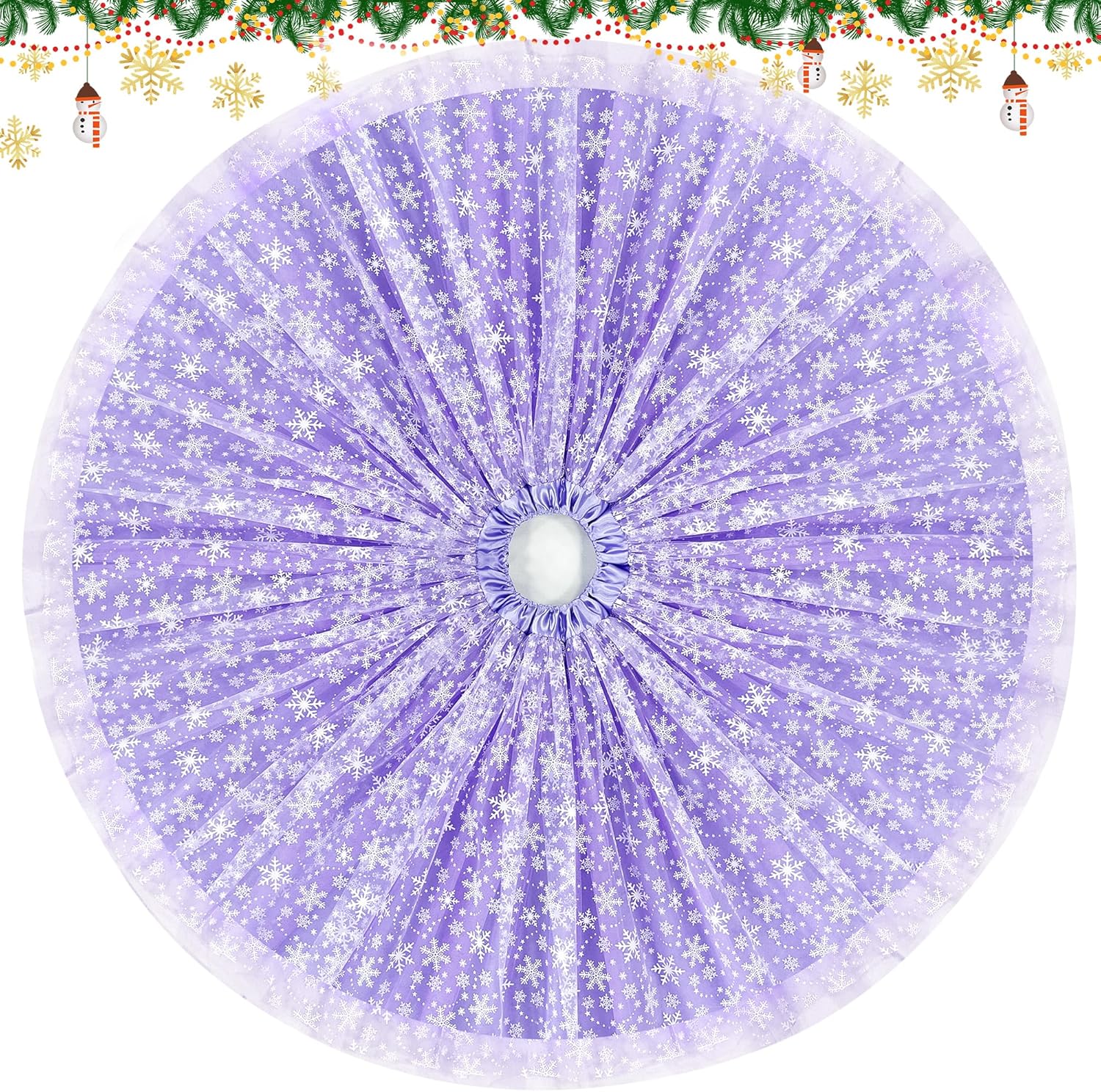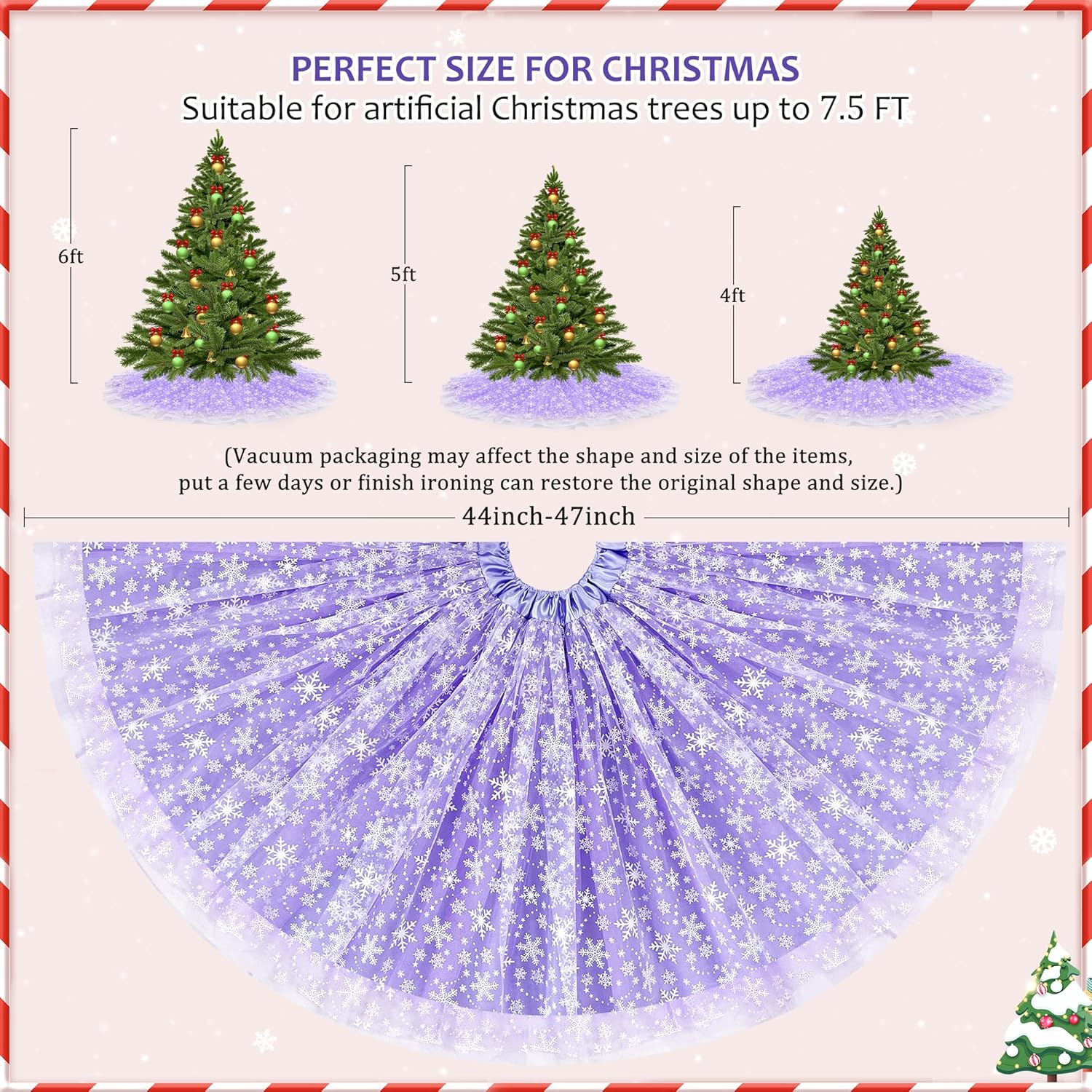 Christmas Wedding Tree Skirt, 4 Layer 45 in Snowflake Tulle Tree Decoration for Party Indoor, Fluffy Tree Cover Mat Ornament for Holiday, Purple