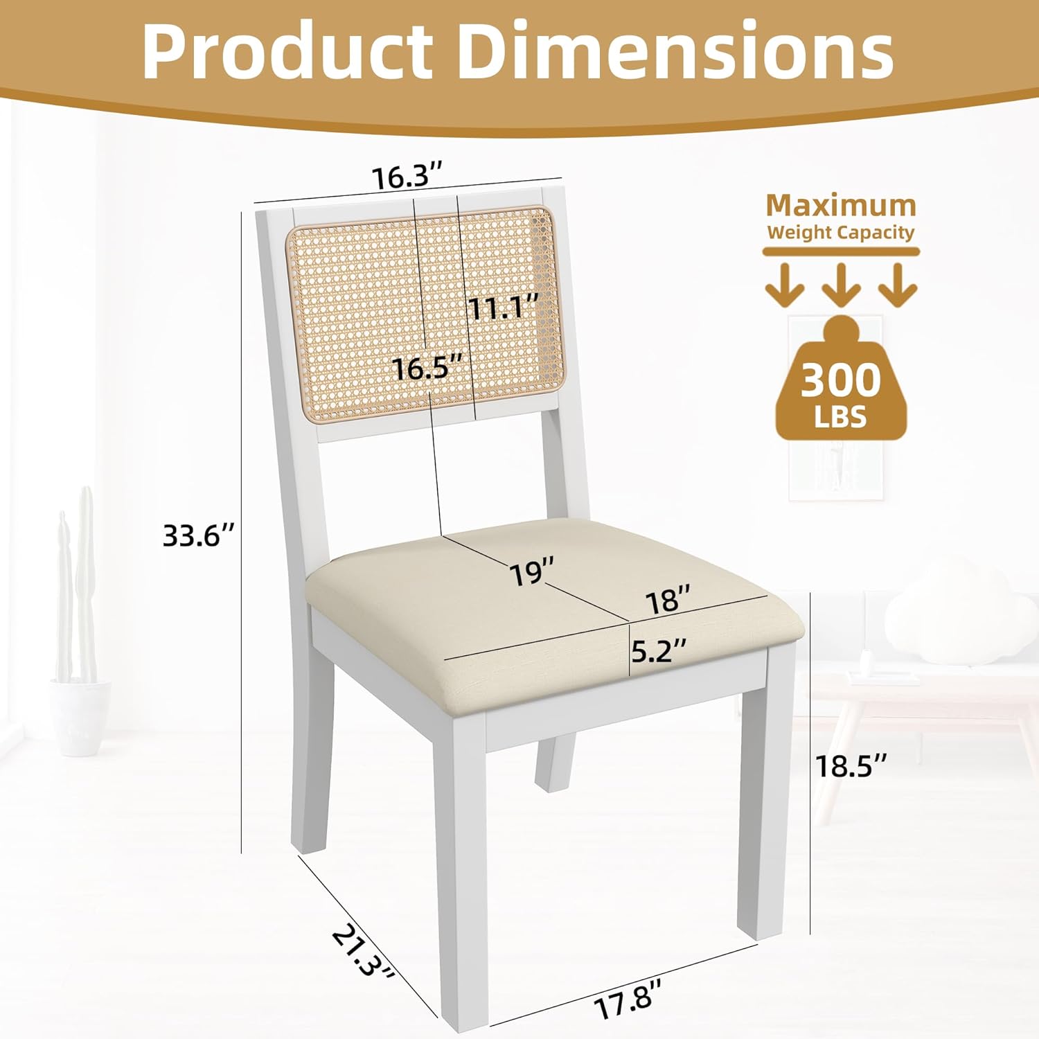- ăSturdy Wooden FrameăMade from solid rubber wood, our rattan dining room chair can support up to 300 pounds. Its four thick wooden legs ensure a stable foundation for sitting, while the integrated design of the backrest and back legs enhances the chairâs durability