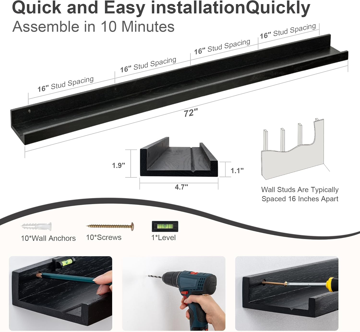 - Multi-Functional: Get creative and find more functions other than the long picture ledge shelf. FLYJOE storage ledge shelves can act as a kids' bookshelf, display shelf for collectibles figures, and more.