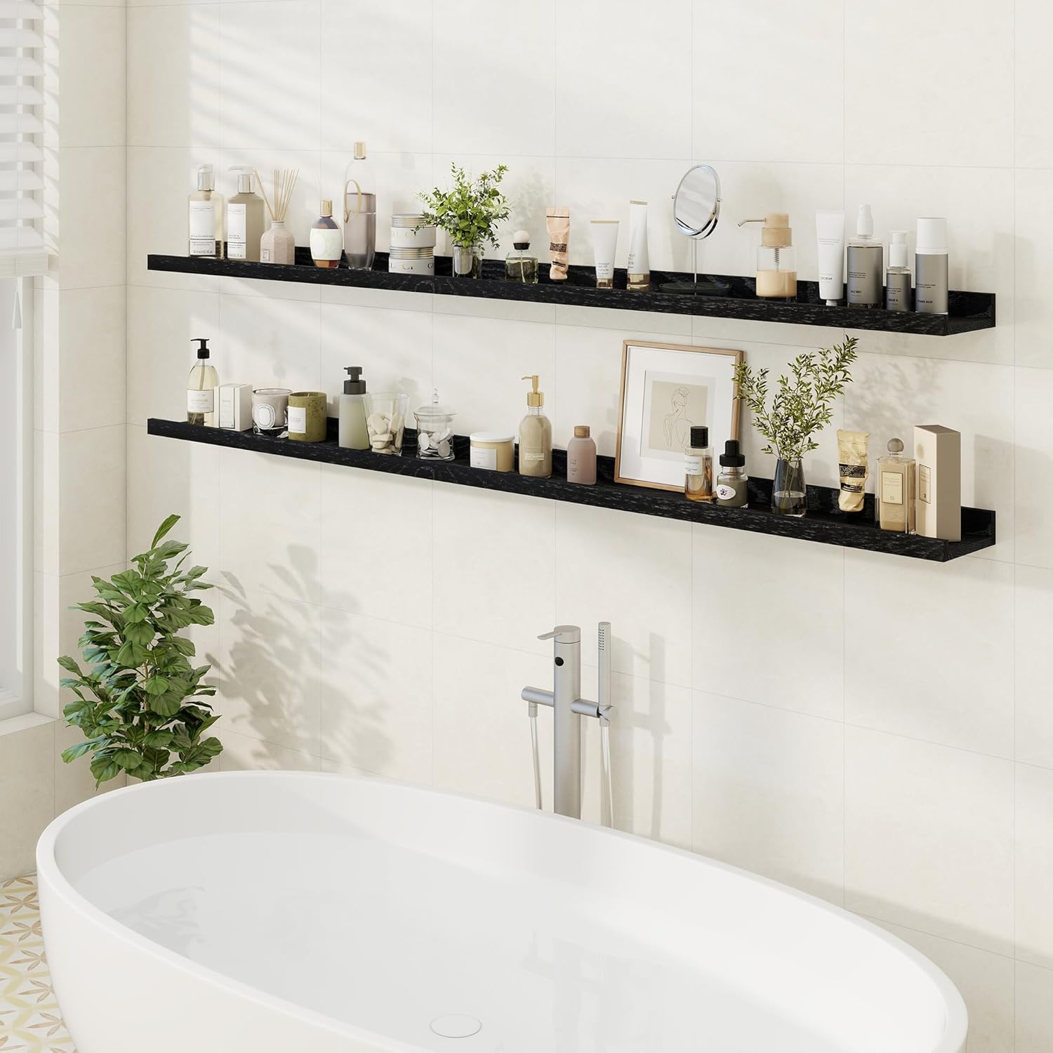 - Picture Ledge Design: Ideal for displaying photos, artwork, small plants, or collectibles, these shelves feature a thoughtful ledge design with a subtle lip and a shallow groove behind it. This design securely holds items in place while maintaining a clean, modern look.