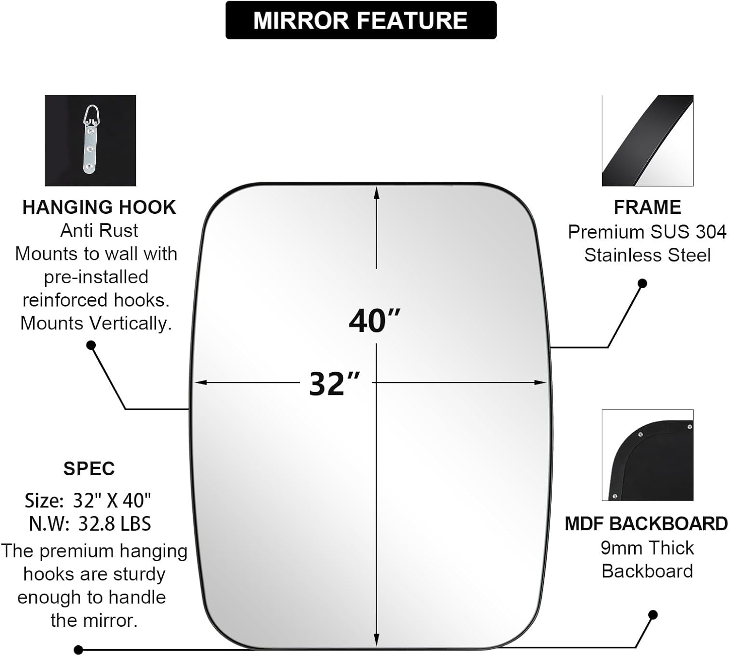 - Versatile Design for Medium Spaces: Enhance your medium-sized bathroom with the 32 x 40 inch mirror; balanced proportions and high-quality construction offer versatility; allows for vertical or horizontal installation to suit your style and space needs