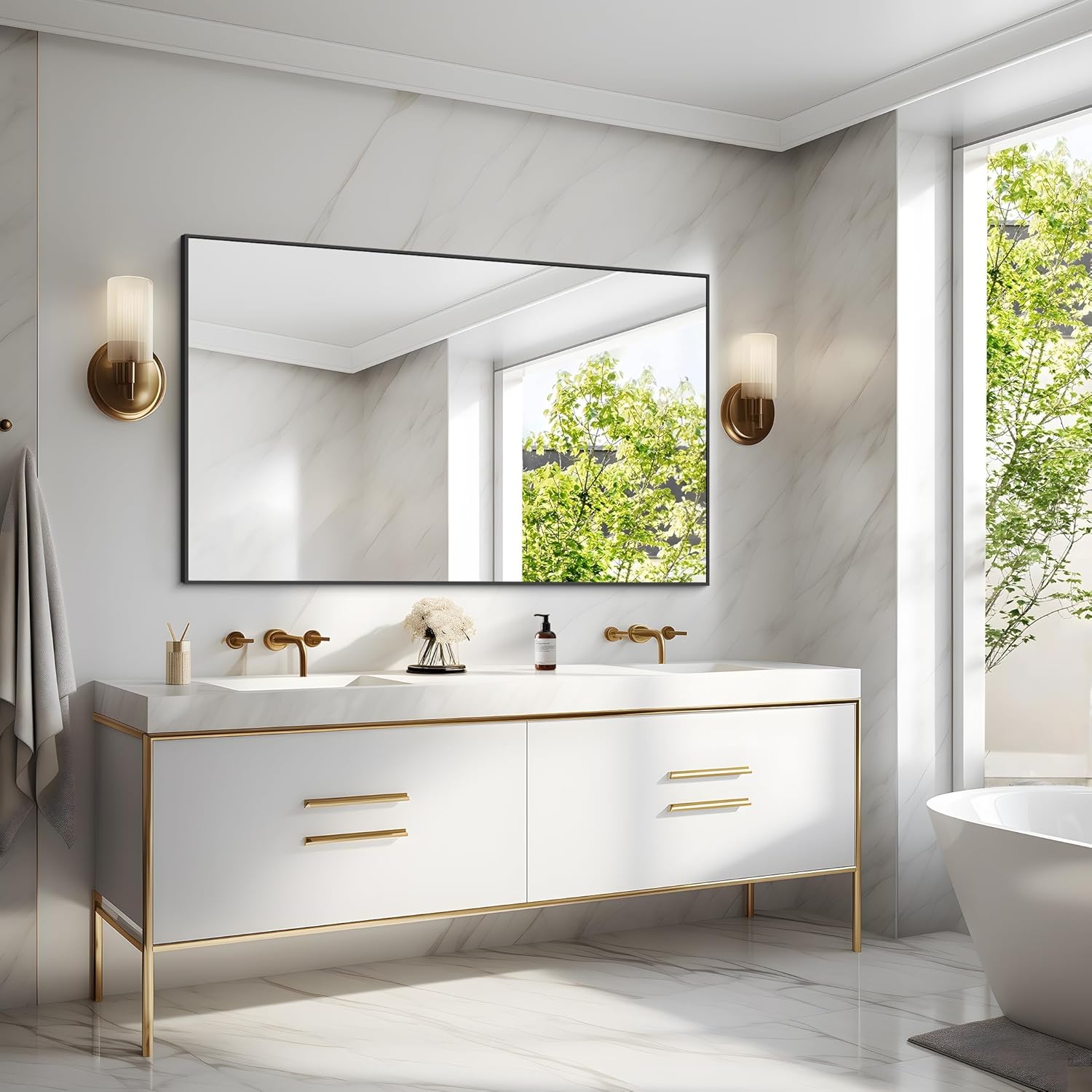 - SAFE USE: Black bathroom Mirror safety backing strengthens the glass surface, making it less prone to breakage and falling off, you can use it with confidence, the mirror design is simple, and the universal size can adorn your room well.