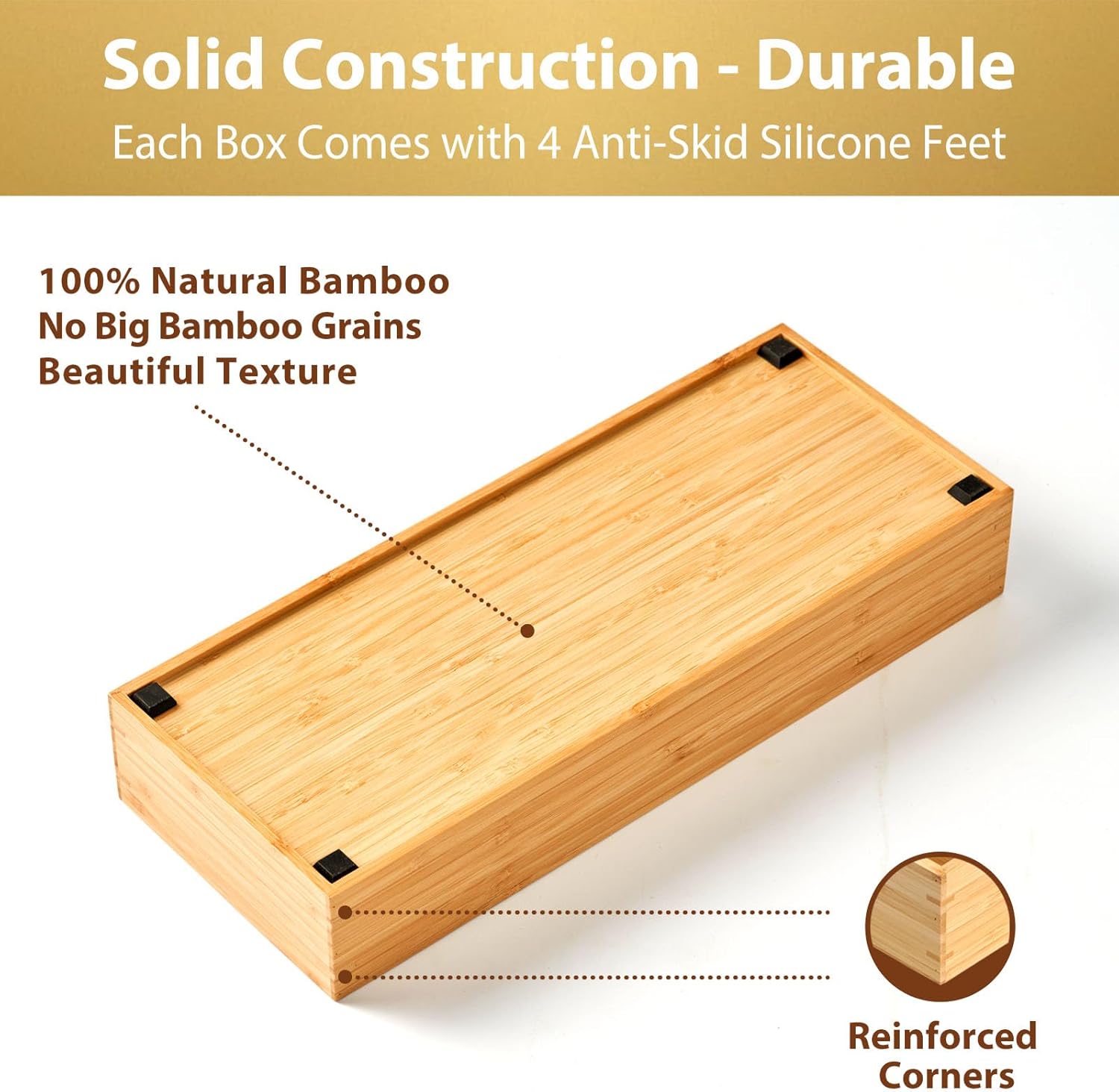 - SILICONE FEET: Raise the caddy off the countertop, protect them from getting wet, and protect table or desk surface from getting scratched, and keep the boxes still in drawer.