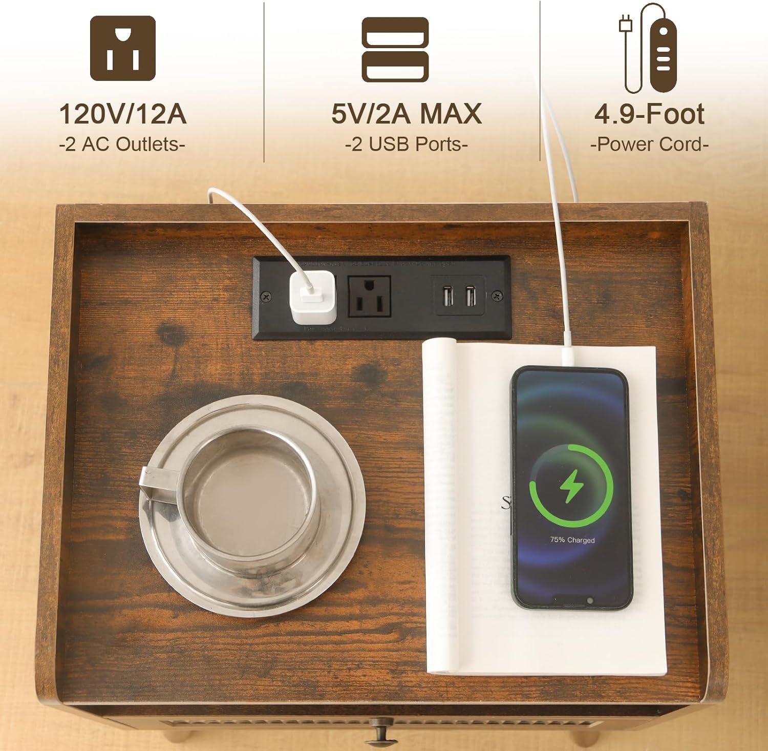- Multifunctional Nightstand: This mid century night stand with the charging station is equipped with 2 USB Ports and 2Γ3-Prong Power Outlets that can meet your needs to charge phones, iPads, laptops, and desk lamps easily. The 4.9-foot-long electrical cord makes phones, and ipads when charging that also is within your armβs reach