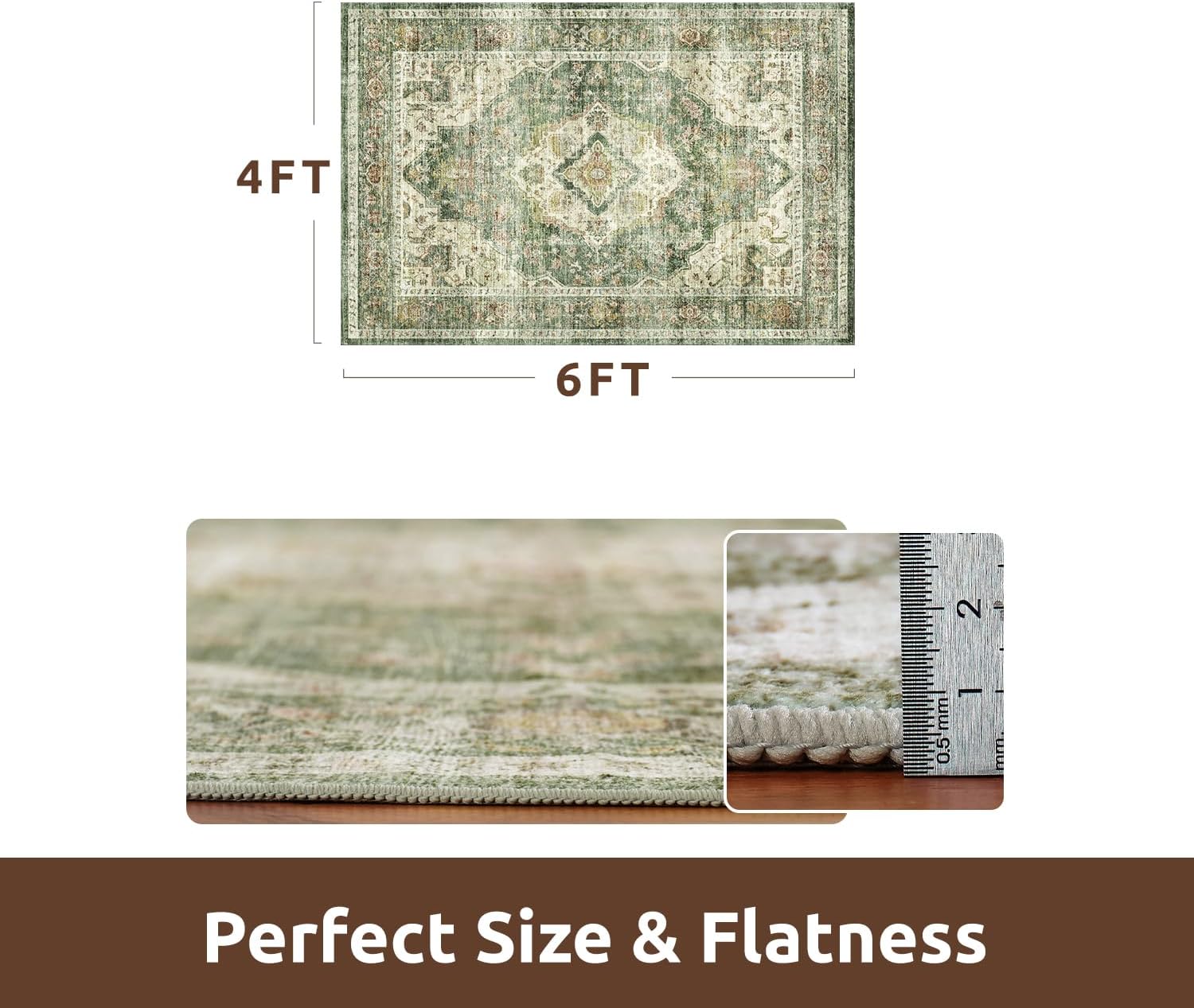 AMOAMI-4X6 Area Rugs for Living Room -Soft Vintage Bedroom Rugs-Non Slip Washable Rug-Throw for Living Room Bedroom Bedside Dining Room Office Green