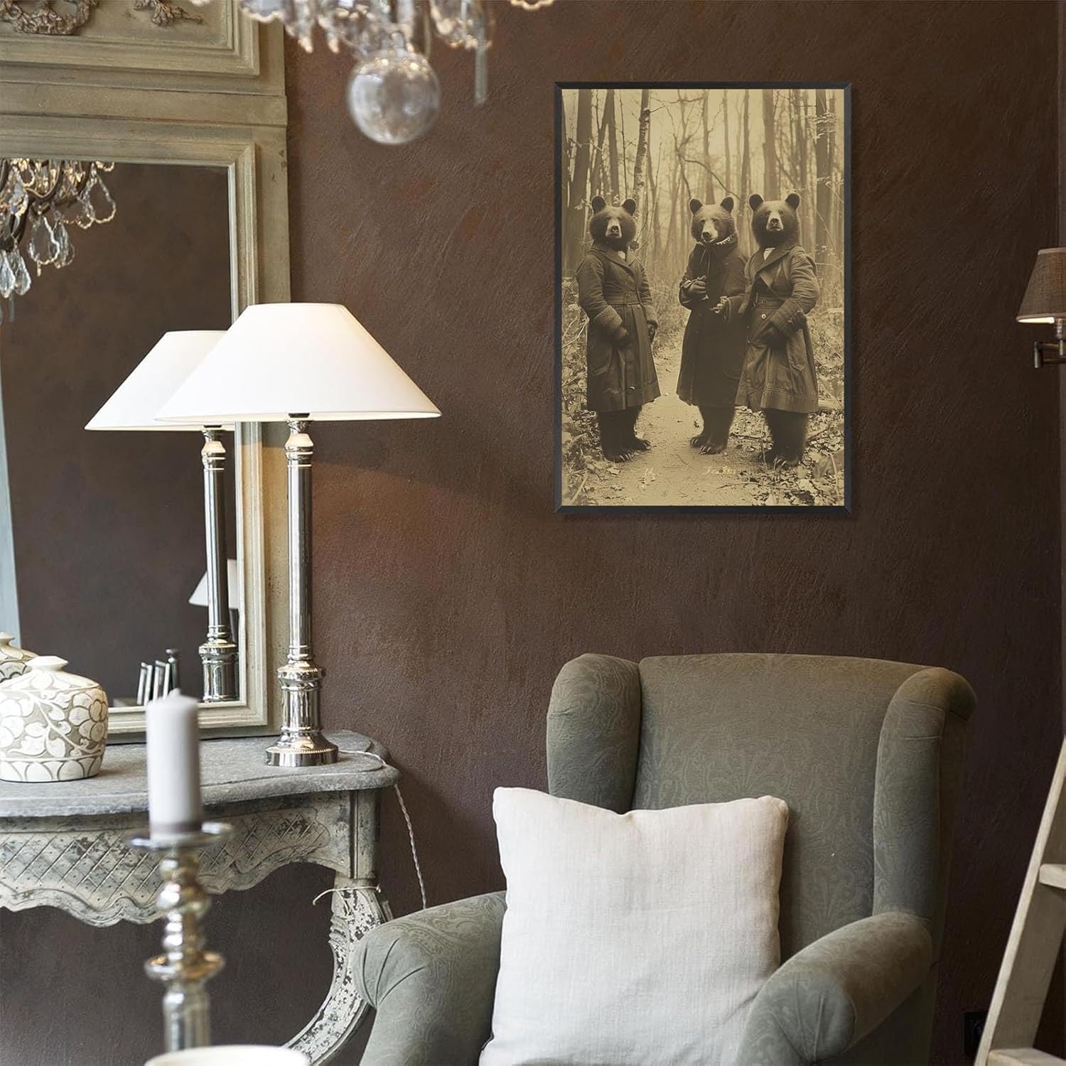 - versatile decor for any scene:whether you're decorating your living room, bedroom, office, dorm, or bathroom,our The Three Bear the forest wall art and posters are versatile,infusing an goth decor aura of witchcraft and gothic occult vibes.