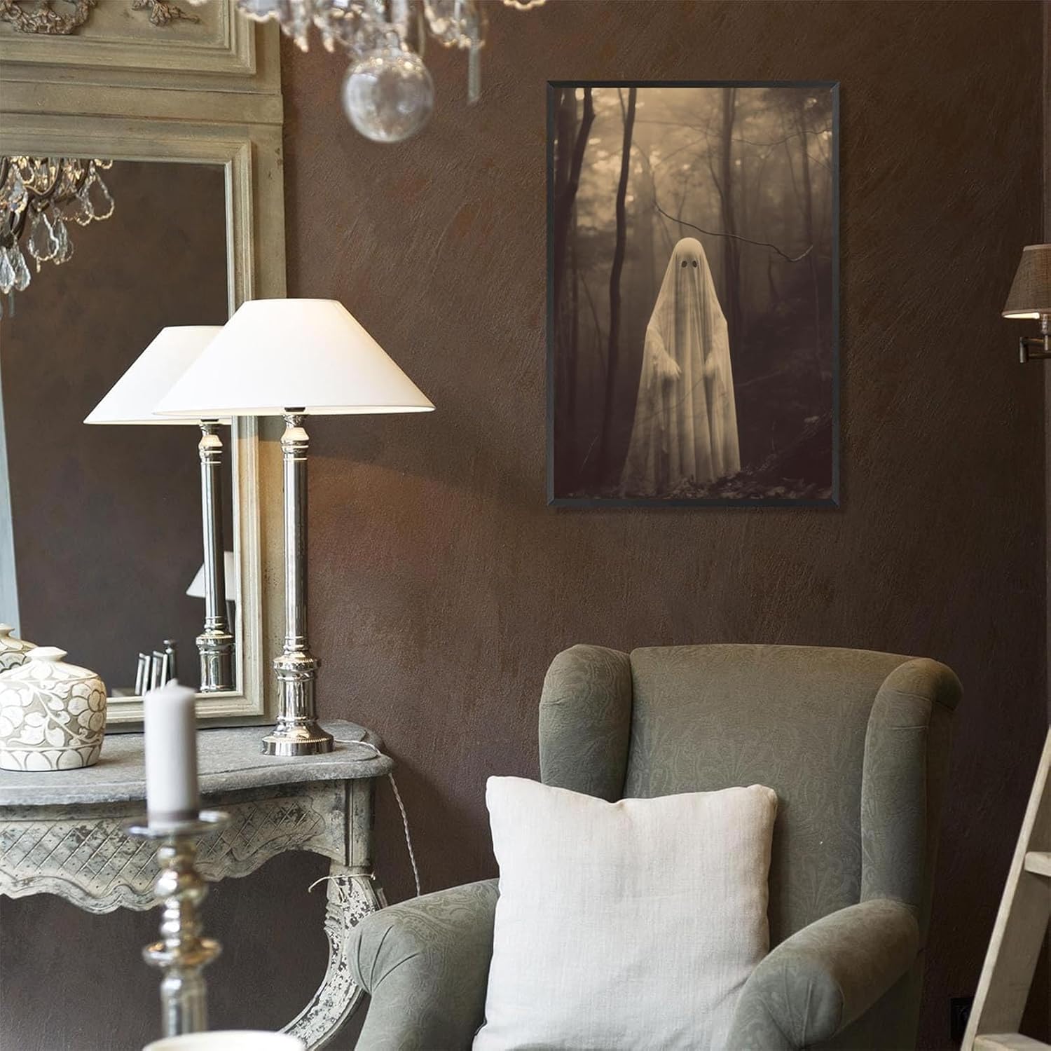 Ghost Forest Spooky Print Poster The Gothic Room Decor Creepy Picture Posters Dark Academia Aesthetic Family Prints Canvas Wall Art Home Apartment Decorations 24X36inch Aluminum Framed
