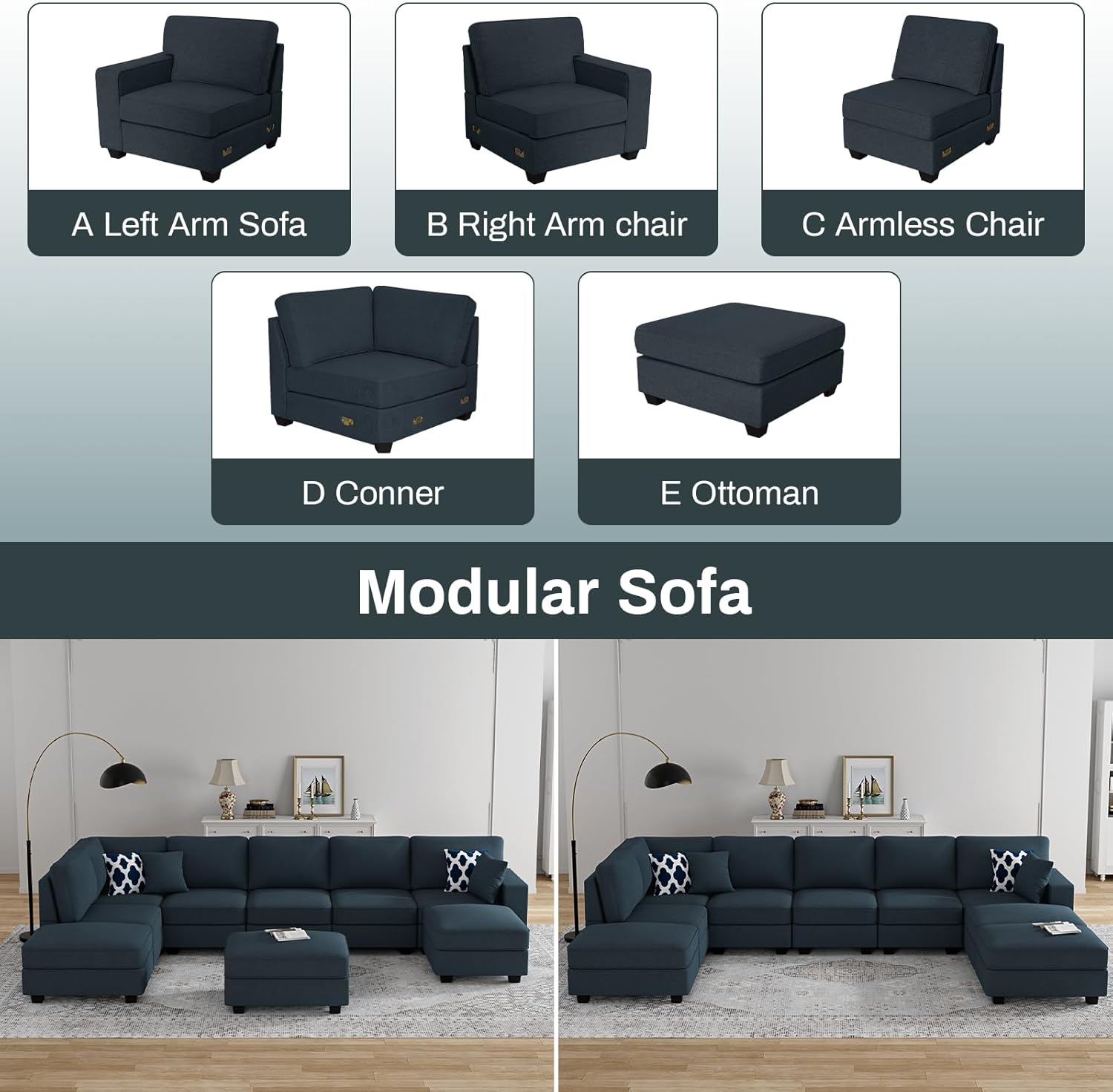 - ăErgonomic DesignăThe backrest of the couches for living room perfectly fits the human body curve, the armrests are wide and at the right height, and the living room sofa as a whole is ergonomically designed to give you comfortable support. The modular sectional sofa is paired with multiple multi-functional small pillows, allowing you to relax anytime, anywhere. The oversized couch has a weight capacity of up to 660 pounds to give you stable support.