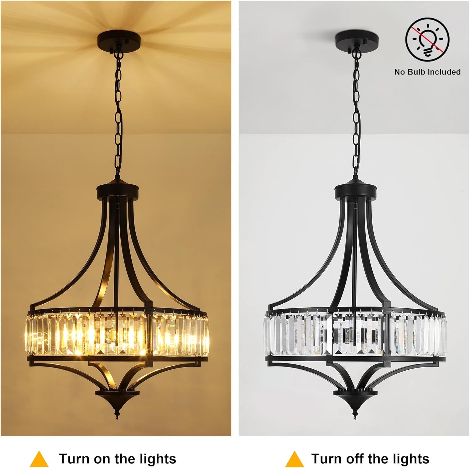 - Modern Farmhouse & Antique Style: Black modern farmhouse chandelier is crafted by skillful artisans. The crystal strips in the main part are skillfully arranged to form an elegant circular structure. Whether it is in the common living room where you spend time with your loved ones, the dining room where you enjoy cooked meals, the chic chandelier fits right in to light up every moment spent inside the comfort of your home.
