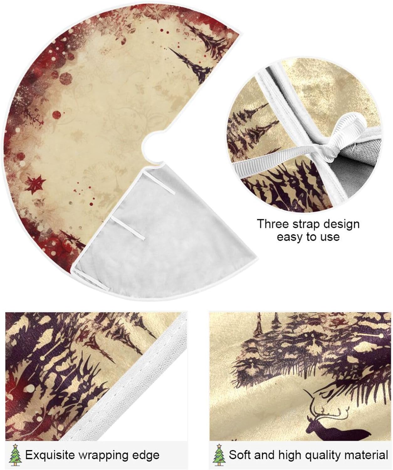 - Easy to Instal: This Christmas tree mat has an opening design with three straps that is seaming on the border of tree skirt, you could install it quickly and easily to decorate your Christmas tree