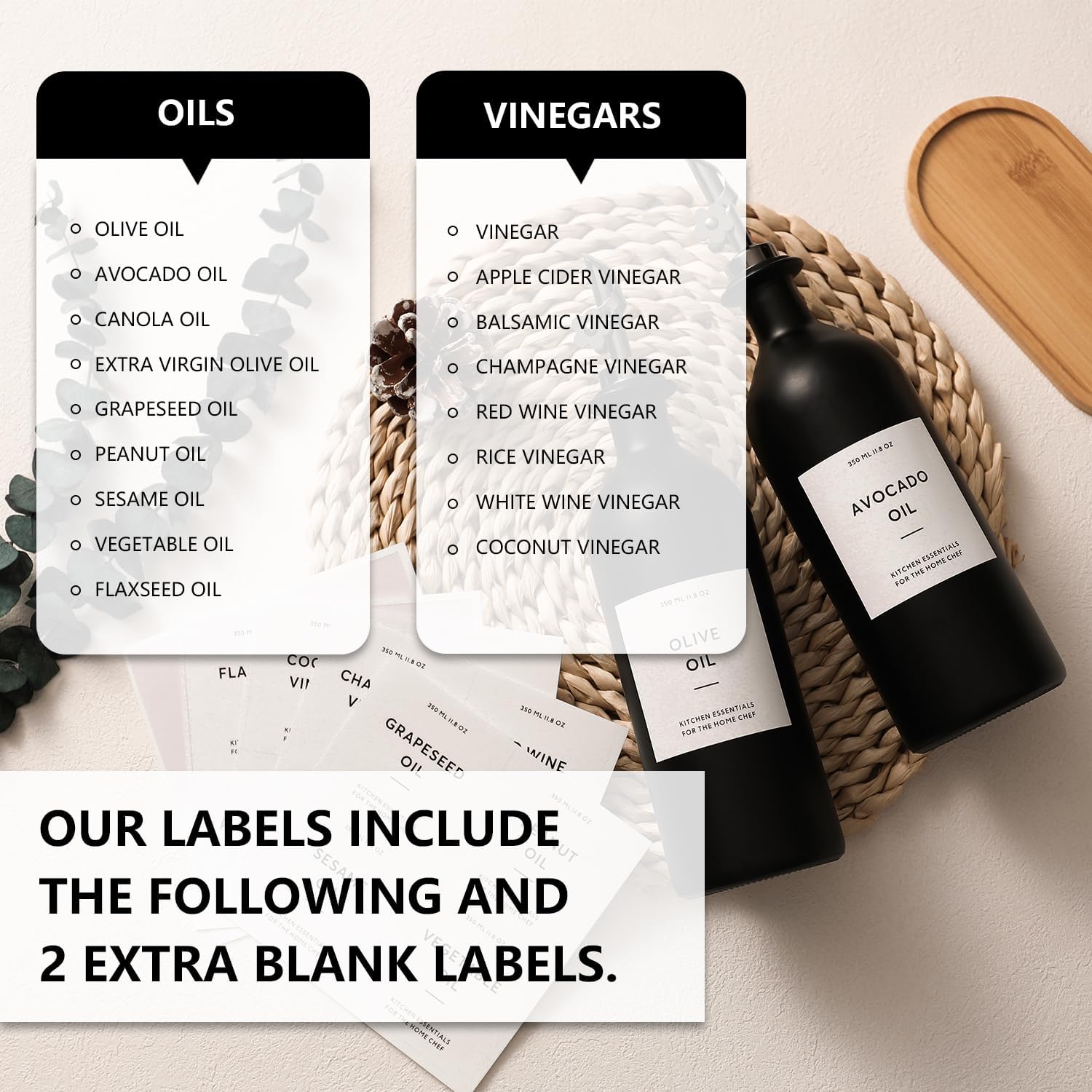- KITCHEN ESSENTIAL - Worthy of sitting on your kitchen counter, The oil bottle for kitchen with label which can help you identify them easily, both decorative and practical, this cooking oil dispenser not only kitchen oil dispenser bottle, but also black and white kitchen décor.