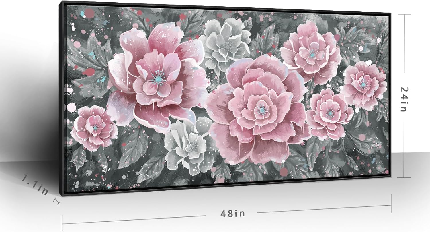 - Black Frame Details: This large artwork is presented in a modern floating frame that enhances its elegant look. Measuring 1.06 inches wide, the frame creates the illusion that the canvas is floating, adding depth and dimension to your pink wall art.