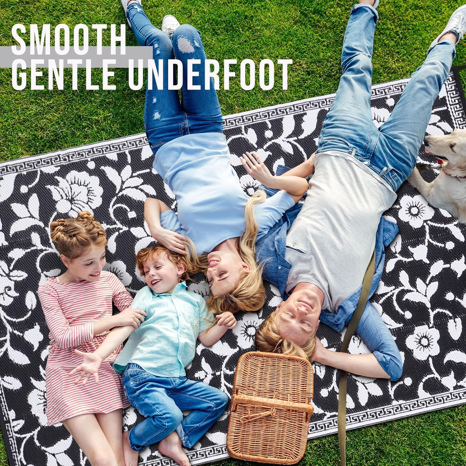 - UV-Protected & Long-Lasting: Engineered to resist sun damage, this camping rug's vibrant colors and fresh design remain beautiful, even with prolonged exposure to the elements.