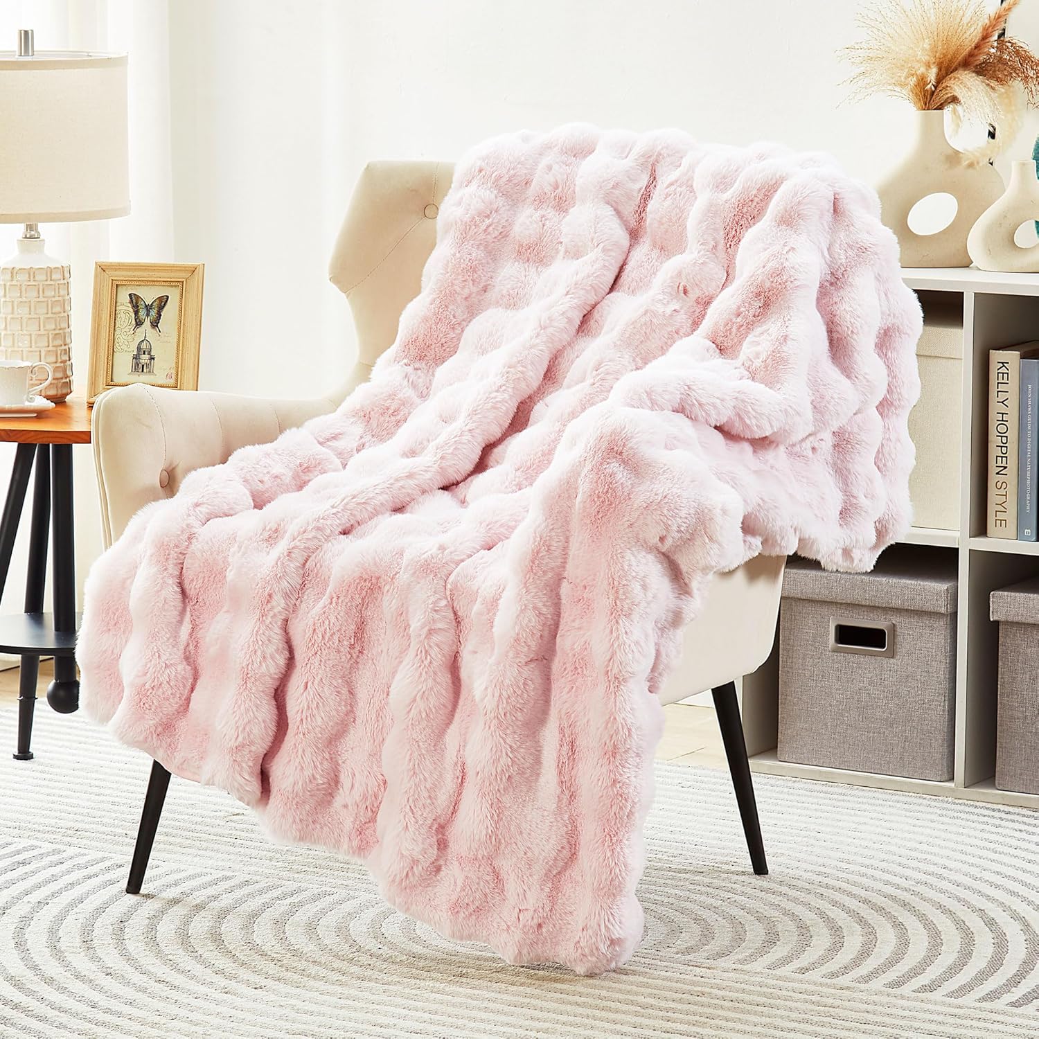 DREAMNINE Oversized Soft Thick Fuzzy Faux Rabbit Fur Throw Blanket Twin Size 60" x 71", Double Sided Comfy Plush Warm Shaggy Fluffy Blankets, Luxury Big Cozy Cute Furry Blanket for Bed Couch Pet, Pink