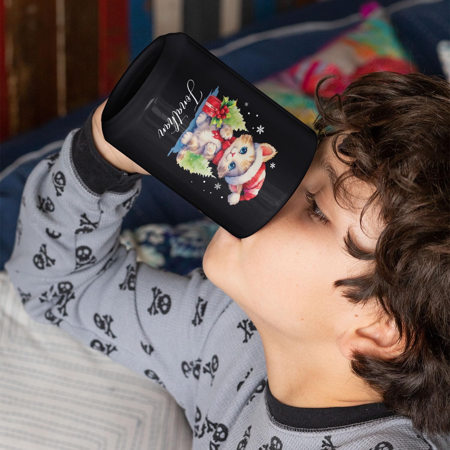 Cute Christmas Cat Cup, Customized Animal Coffee Mug, Gift For Birthday, Personalized Animal Lover Black Cup 11oz 15oz, Custom Xmas Cat Design Mug For Girl