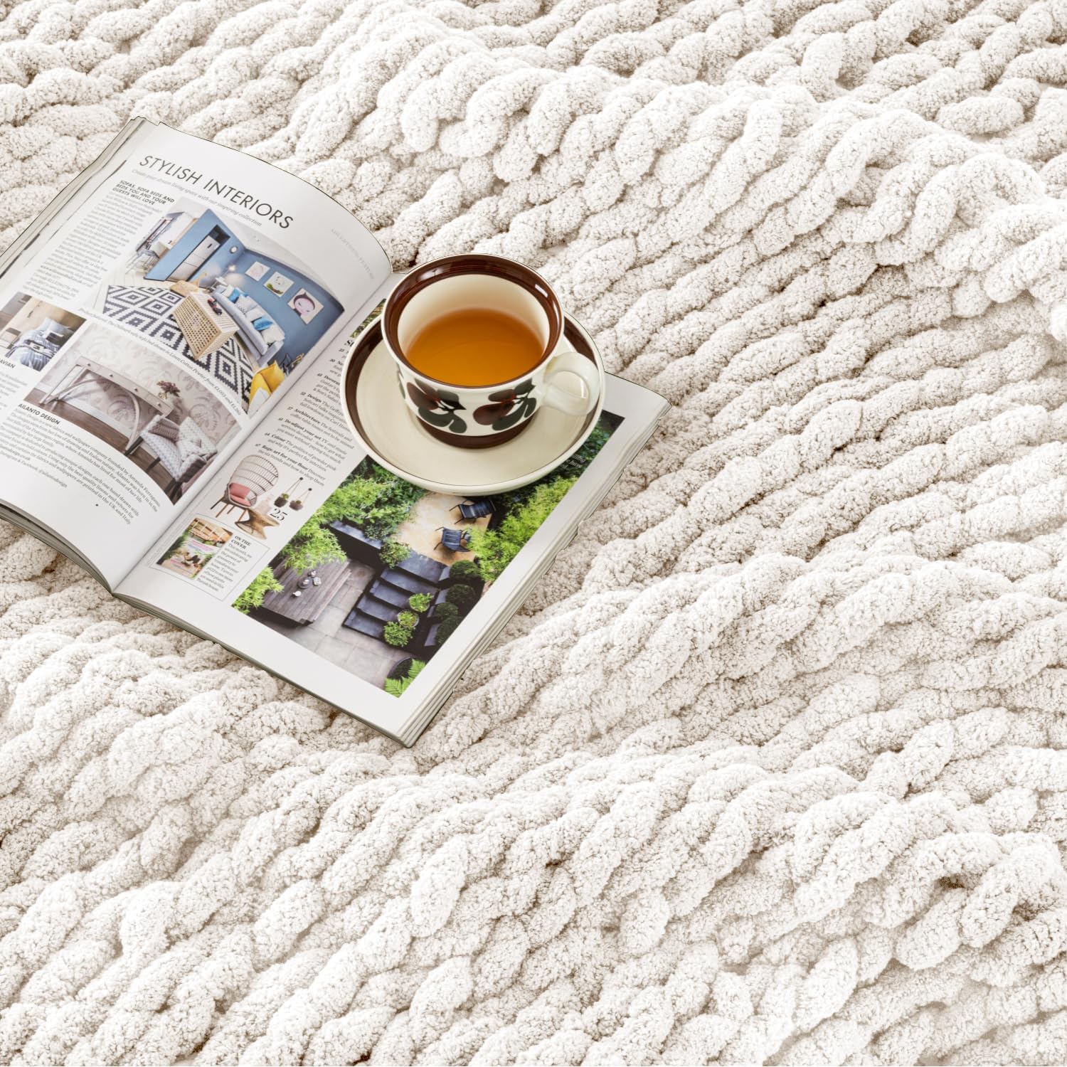 Ultra Soft Chunky Knit Blanket Throw -50x60 Hand Knitted Warm Chenille Throw Blanket, Home Decor Soft Thick Yarn Cable Knit Blanket Breathable Fleece Banket Christmas for Couch Bed Sofa Best GIF Gift