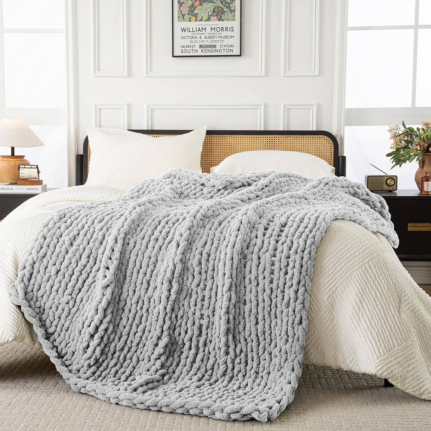 - Exquisite Chunky Knit Blanket & Reversible Softness:Soft chenille throw blanket has been pulled and tested many times to ensure that is not easy to shed, pilling, tear into pieces, or even wear!Enjoy cuddling with this soft and calming blanket whenever you're ready to get cozy.