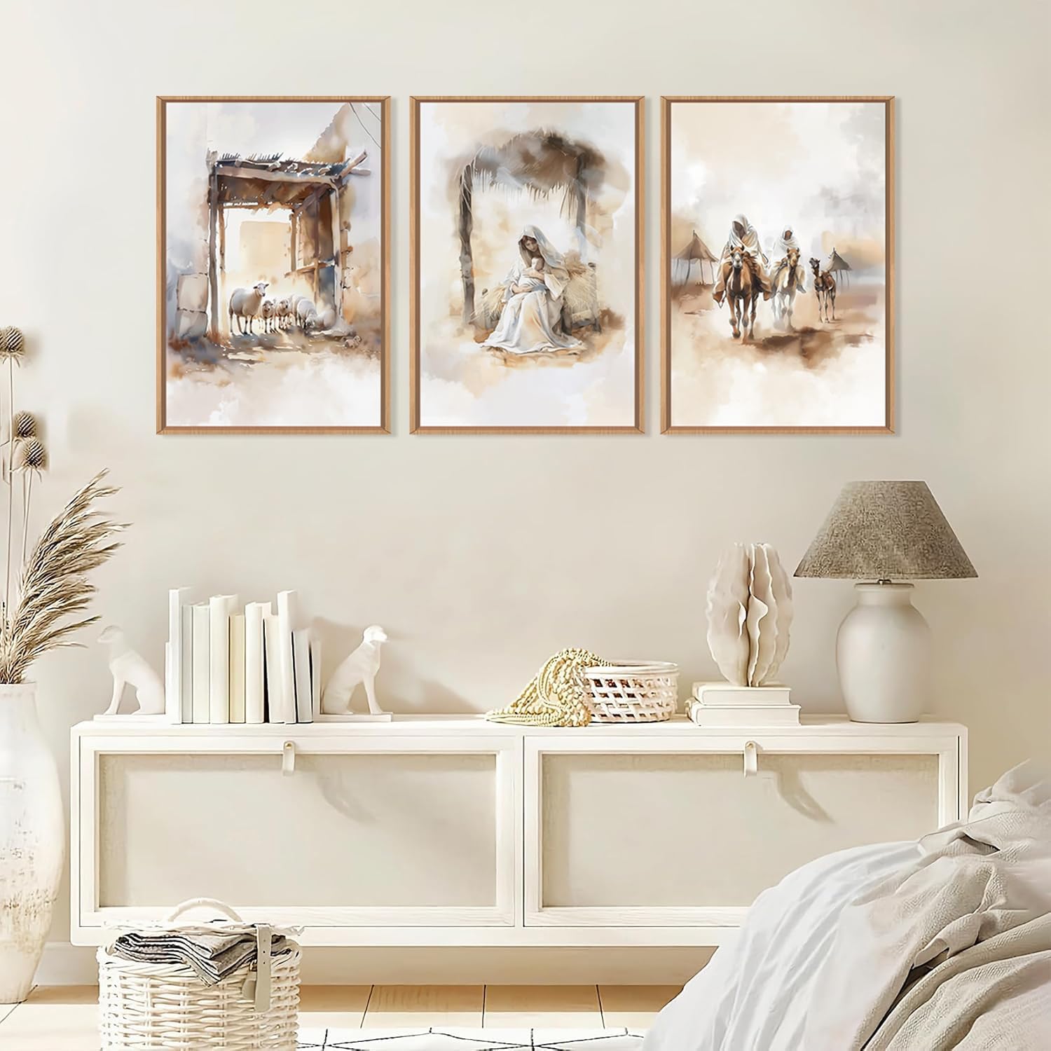 - 【Jesus Christian Catholic Wall Art】 The Size of the Christian framed canvas wall art set is:24x36 inchx3pcs (60x90cmx3pcs). Vintage Jesus Poster Prints artwork use high-quality environmentally friendly ink and high-quality canvas, and use the industry's top printers for layered spraying, the colors are delicate and the transition is natural.bring you visual enjoyment.