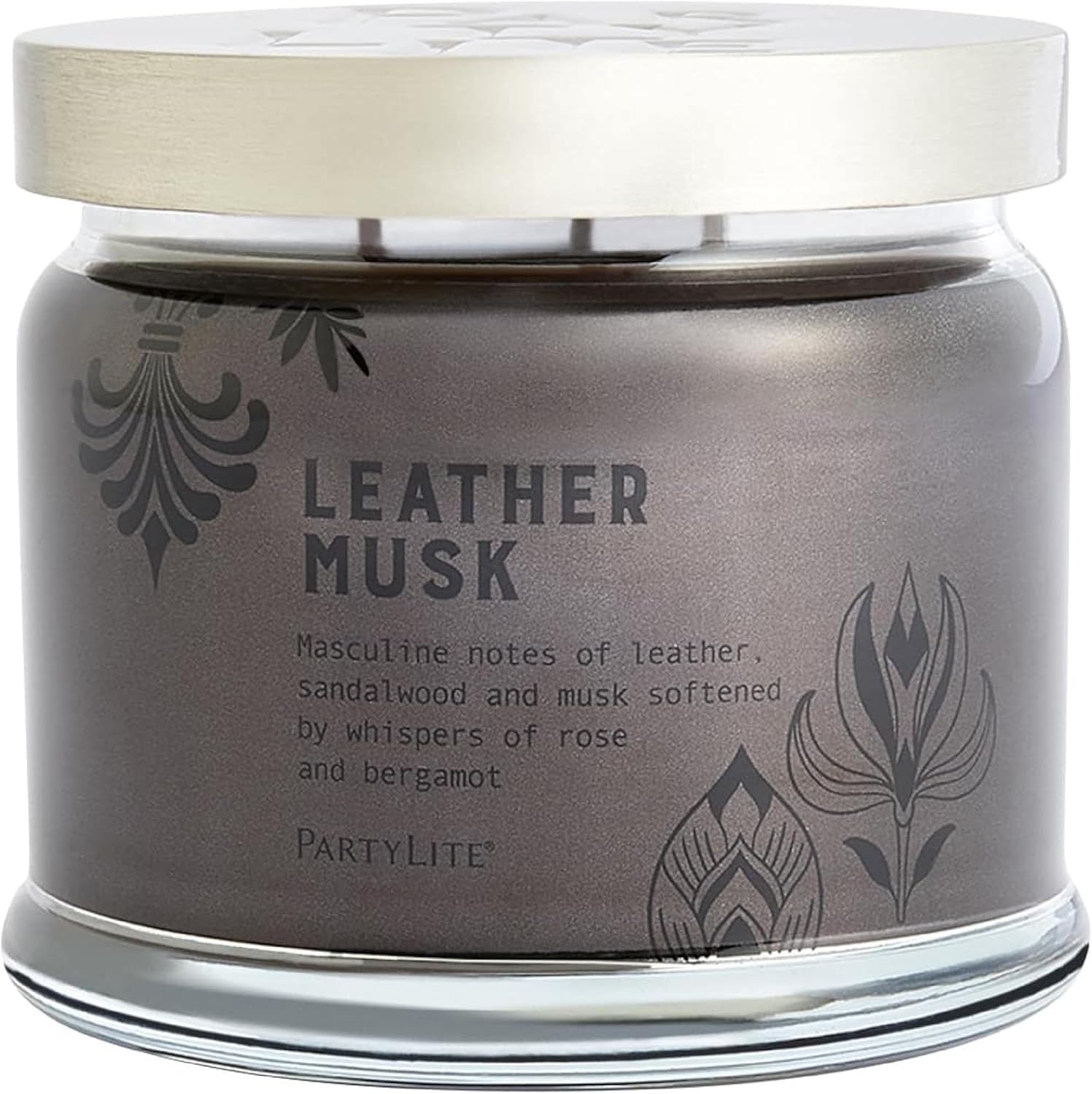 PartyLite 3-Wick Jar Candle, Highly Fragranced Clean Burning Glass Candle, 25-45 Hours Burn Time (Leather Musk)
