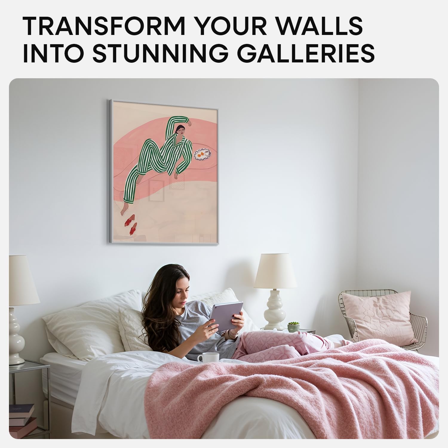Homeforia Silver 22x28 Picture Frame, Rectangular Metal Poster Frame with Mat, 22 x 28 Frame Matted to 18 x 24 Photo, Wall Mount, Minimalist Style, Tempered Glass, Wall Hook Included