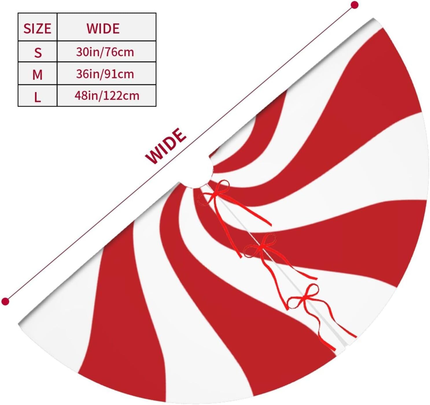 48" Large Christmas Tree Skirt, Red and White Peppermint Candy Round Pattern Tree Mat Base Cover for Xmas Festive Holiday Party Decoration Ornaments
