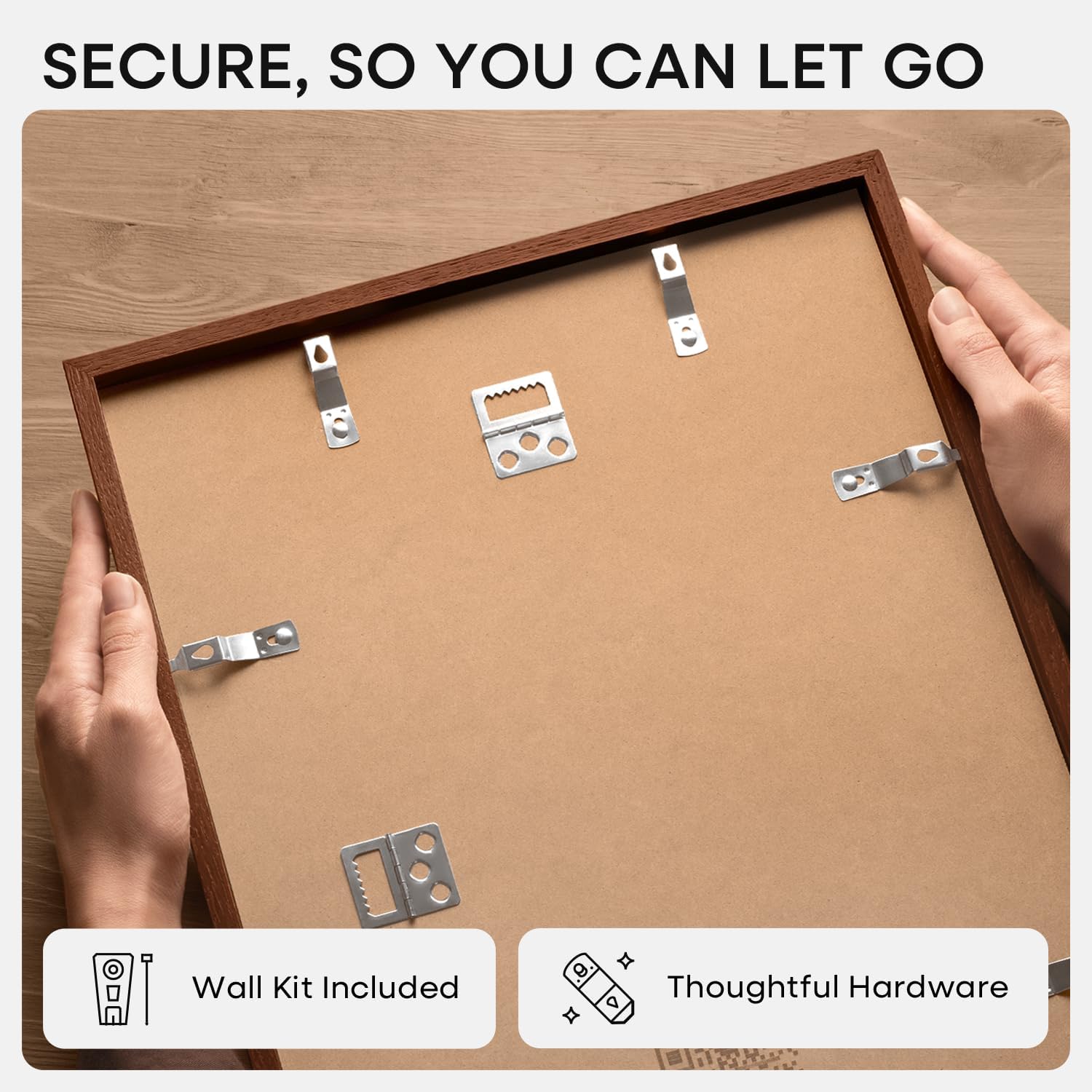 Homeforia 11x22 Newspaper Frame Brown, High End Dark Oak 11 x 22 Picture Frame Wood without Mat, 22x11 Wooden Walnut Poster Frames for Wall, 11 by 22 Display Frames, Tempered Glass, Wall Kit, Set of 1