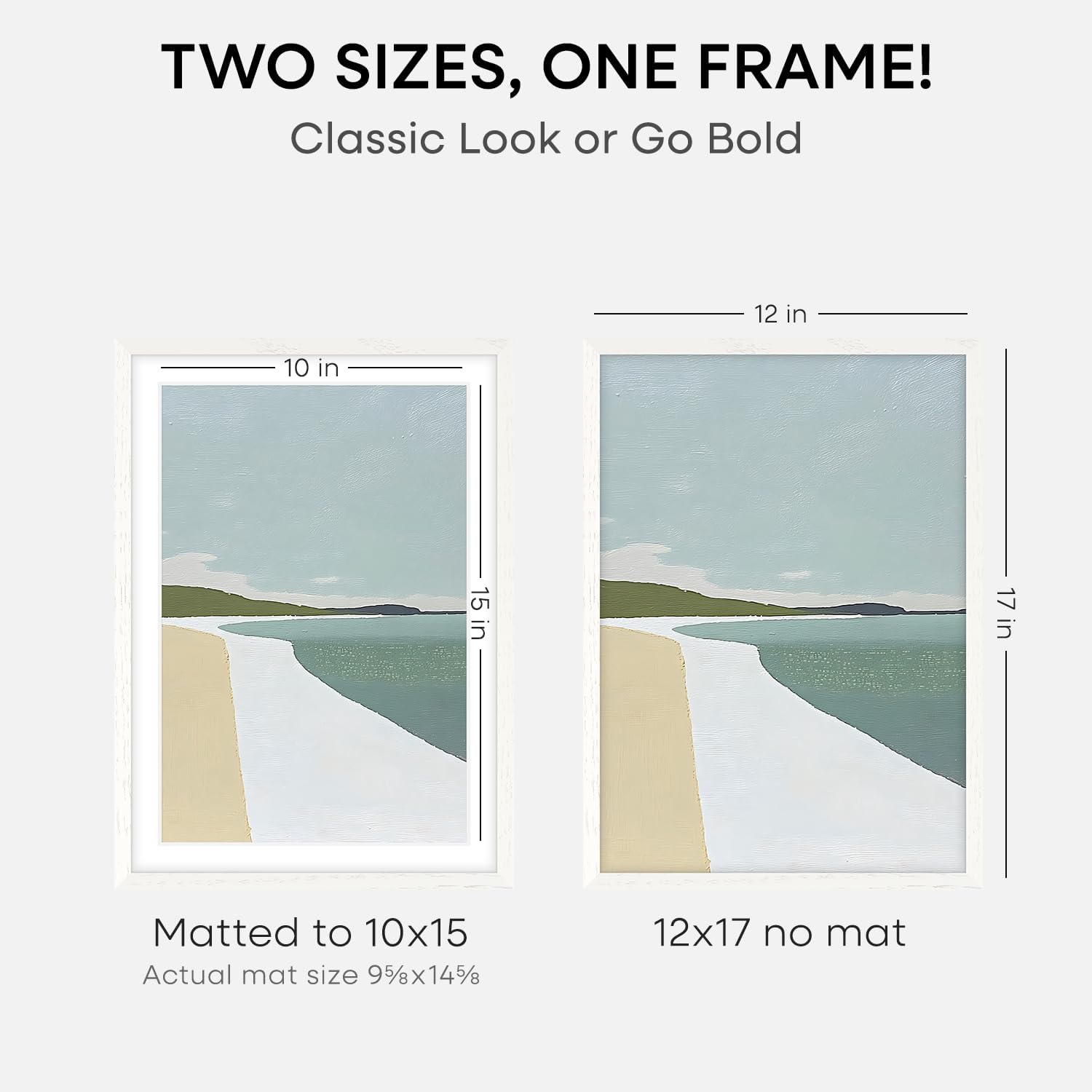 Homeforia 12x17 White Picture Frame, High End Oak 12x17 White Wooden Poster Frames with Mat 10x15 for Print, 12 x 17 Wood Frame Matted to 10 x 15 Photo, 17x12 Frame, Tempered Glass, Wall Kit, Set of 1