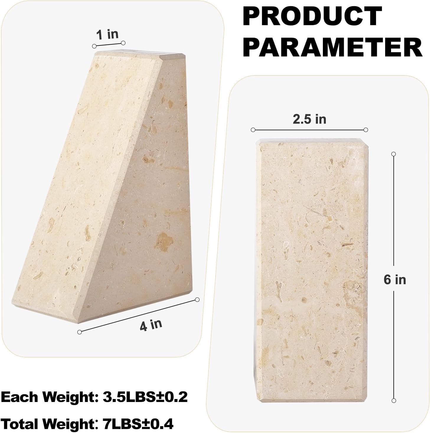 Marble Bookends for Heavy Books, Decorative Book Ends for Shelves, Beige Stone Durable and Heavy-Duty Book Ends for Hardback Books & CDS, Unique Book Stopper & Holder, Set of 2
