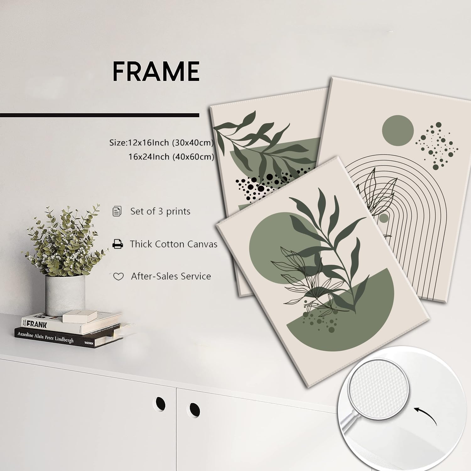 - Boho Wall Art: This set of boho framed canvas prints comes wrapped on a wooden frame and is ready to hang.The simple geometric pattern with plants make it easy to mix and match most home decor styles, such as Bohemian style decor, mid-century wall decor, modern wall art decor and more. Whether you're into boho decor or mid-century modern style, this art set complements a variety of interiors.