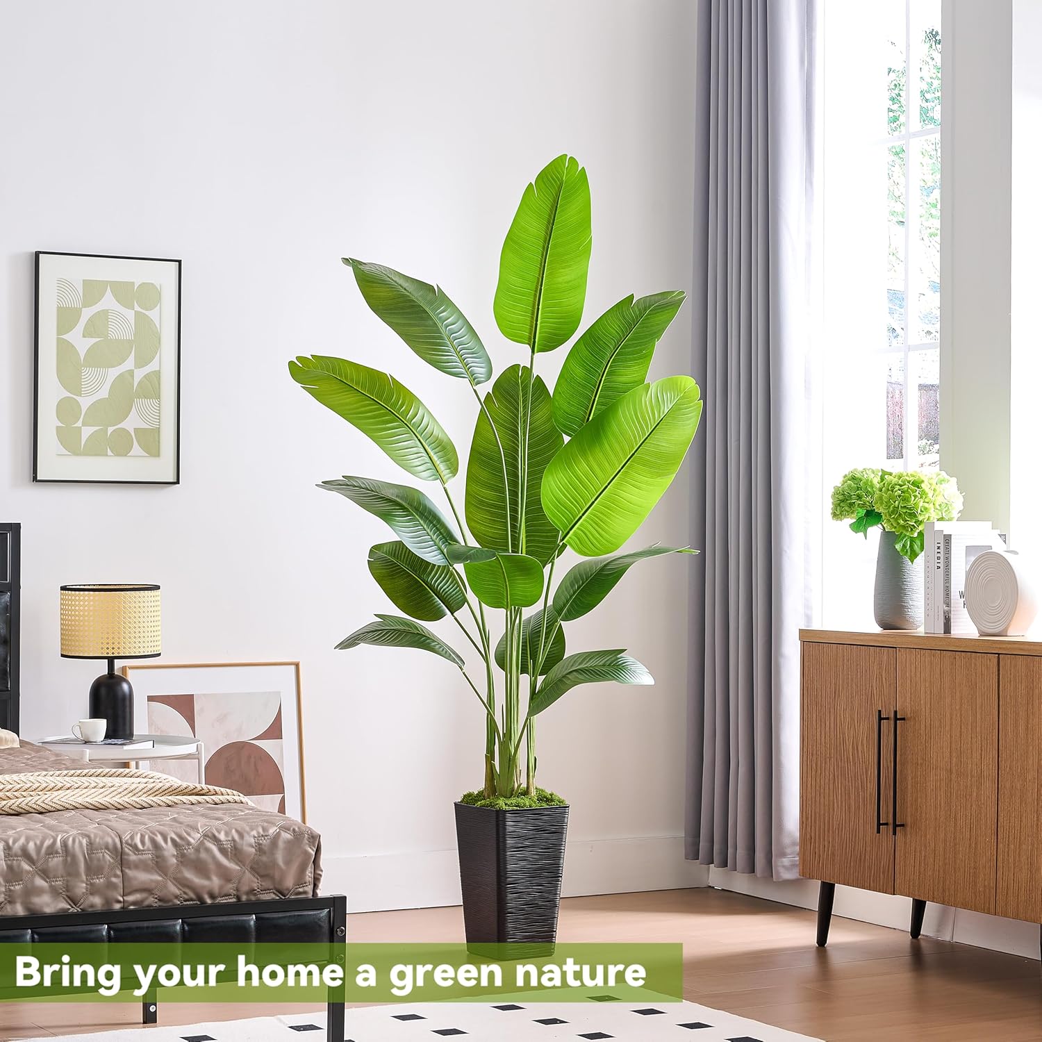 Lifelike Bird of Paradise Silk Artificial Plant Faux Banana Leaf Tree for Home Decor - Perfect Indoor Floor Plant with 11 Trunks (1, White Tall Planter, 6.6 FT)
