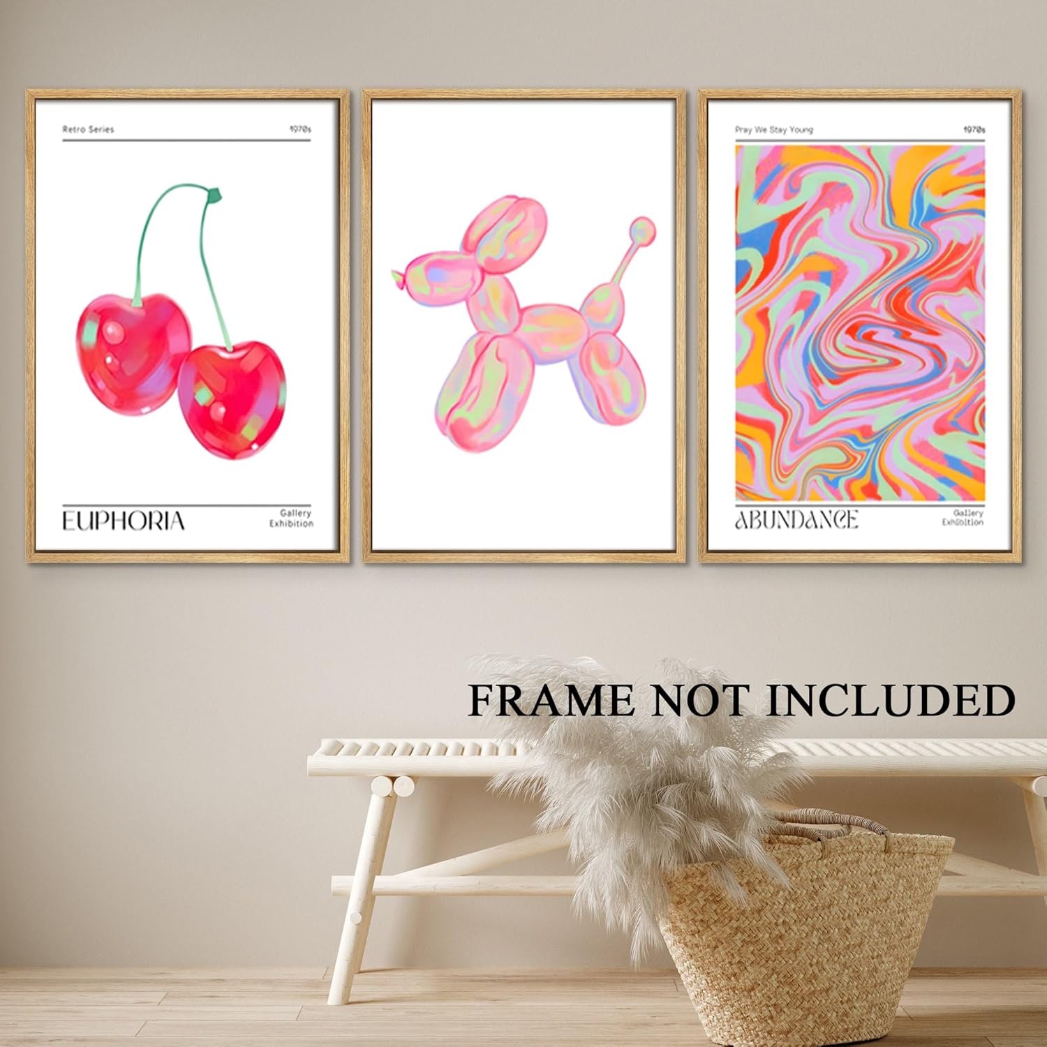 Pink Preppy Wall Art Posters Set of 3 Trendy Cute Balloon Dog Cherry Canvas Prints Modern Colorful Abstract Aura Painting Retro Pop Decor Positive Picture for Living Room Bedroom 12x16in Unframed