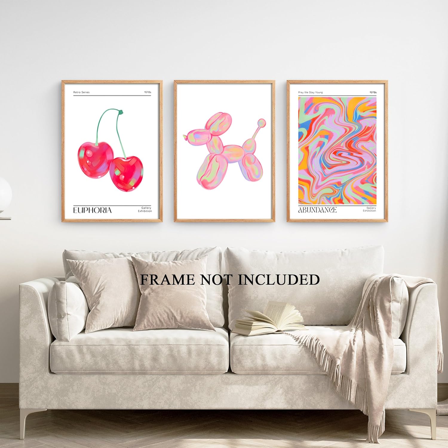 - 2.pink wall art: The Pink Balloon Dog Cherry Poster Print is a canvas print and does not come with a frame, so you can choose how you like to hang it.Ideal for creating a cohesive look in a space with pink wall decor or preppy posters, making them perfect for those looking for cute wall decor in a 3-piece set.