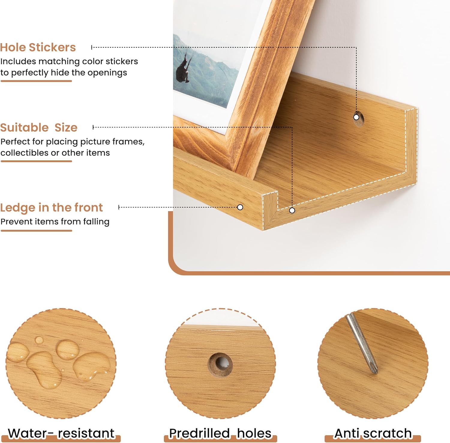 - Enhanced Stability Design: Featuring a secure lip at the front, these floating shelves prevent items from slipping or falling, confidently supporting up to 42 lbs, making these MDF wood shelves ideal for showcasing cherished items.