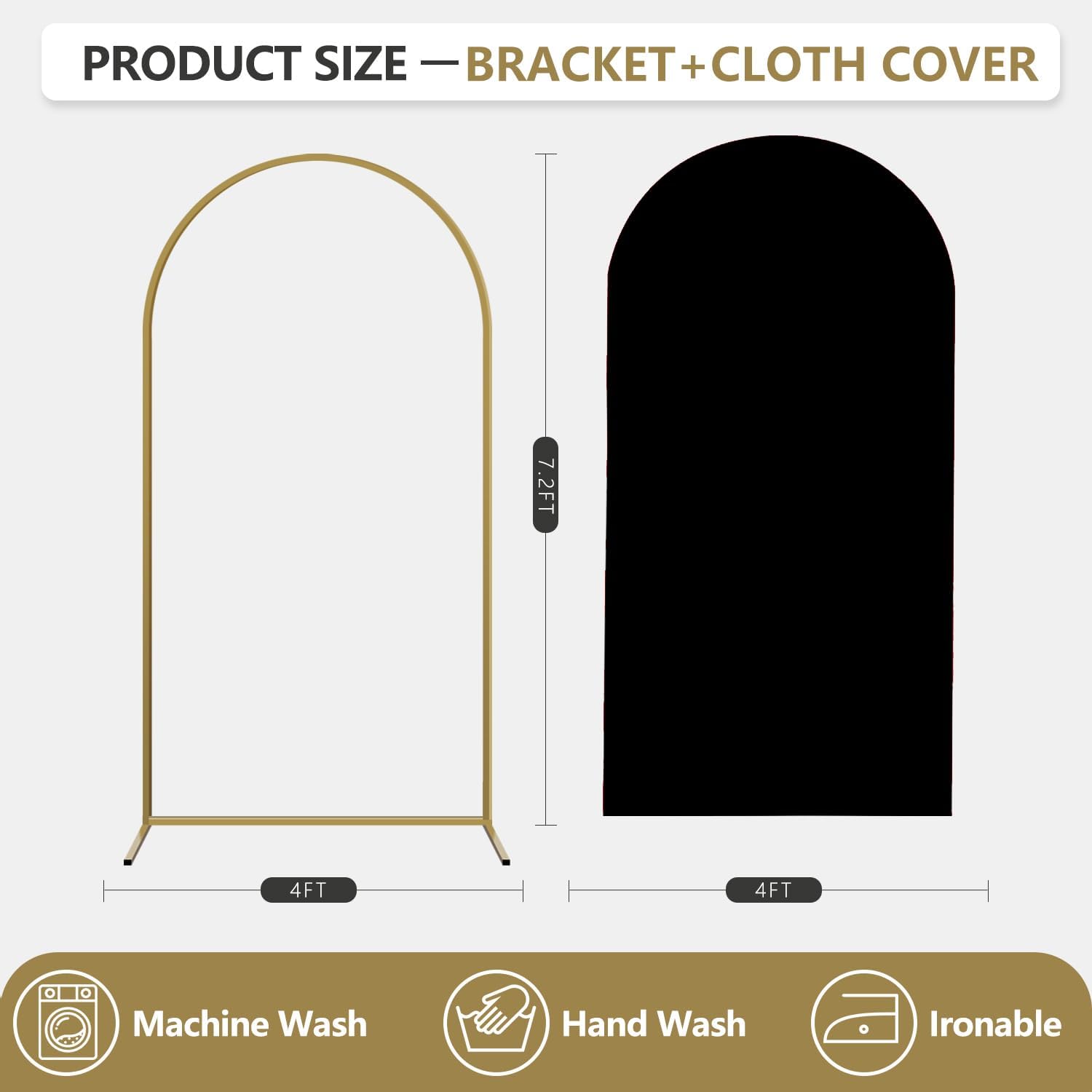 - Arch Backdrop Stand Sizes: We offer a range of gold arch stand sizes to suit your needs, height of 4ft, 5ft, 6ft, 6.6ft, and 7ft. This versatile arch stand is perfect for creating stunning backdrops for any party, wedding, or event decoration, ensuring a memorable setup every time.