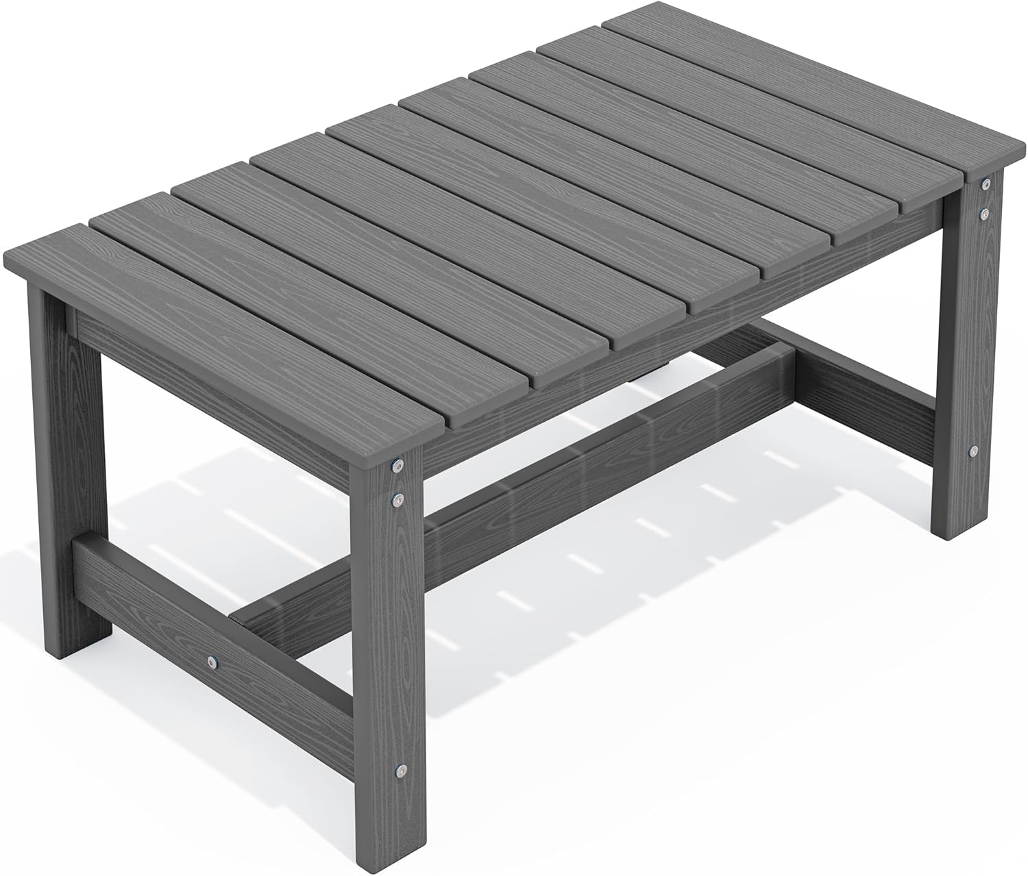 SERWALL Outdoor Coffee Table, HDPE Patio Coffee Table for Outside, Grey