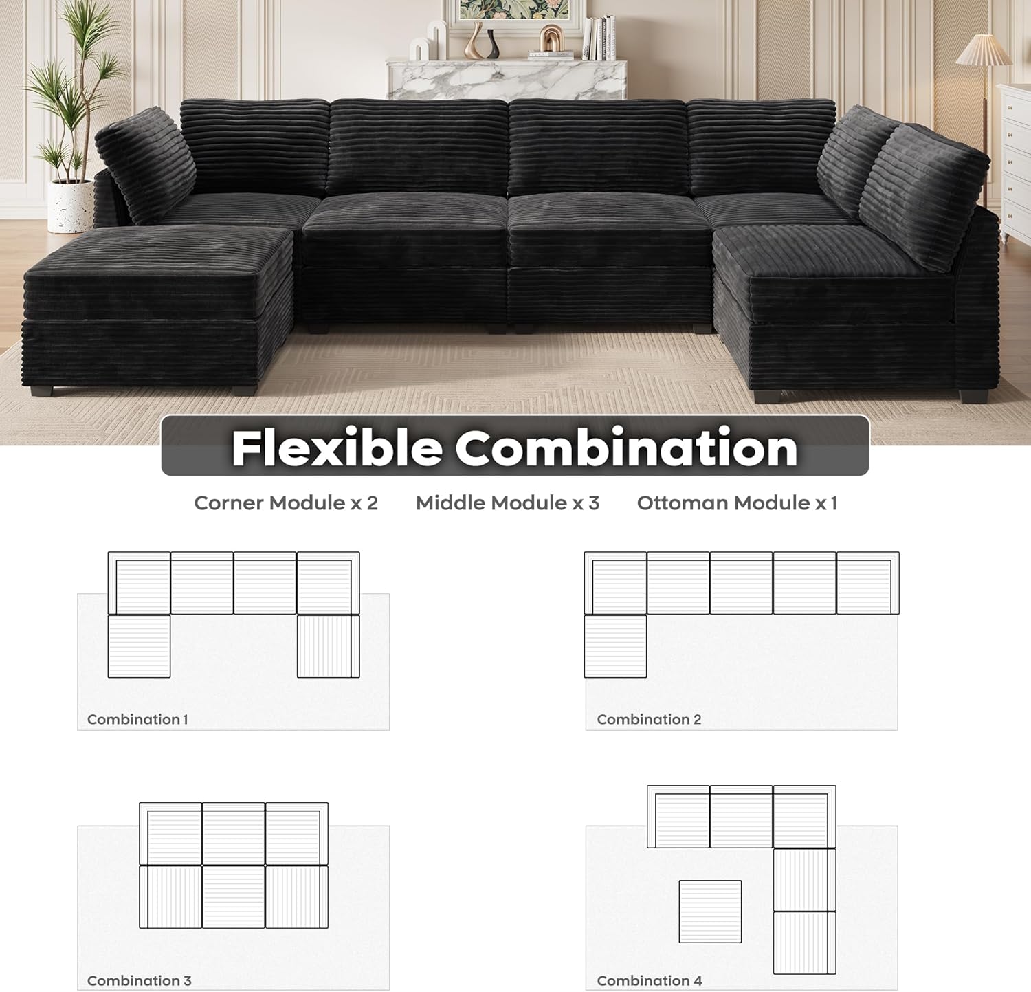 - Versatile Modular Sofa Couch: Modular sectional sofa couch allow different households to move and reassemble freely for flexible combination, customized DIY combination transforming into an L-shaped, U-shaped V-shaped or sofa bed that suits your space and style. The more seat modular you add, the greater opportunity that you get to enrich and shape your life space, perfect for movie night, parties or home theaters