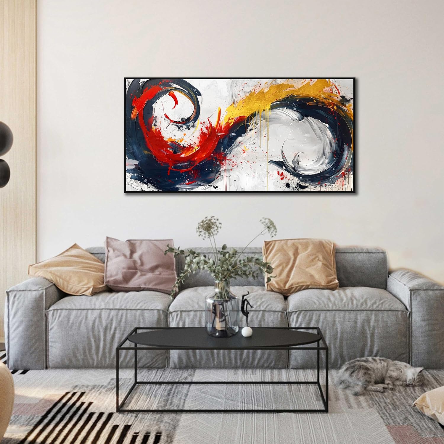 Abstract Art Work for Living Room Walls - Modern Prints Canvas Wall Art - Black Framed Wall Art for Bedroom Size 24" x 48"