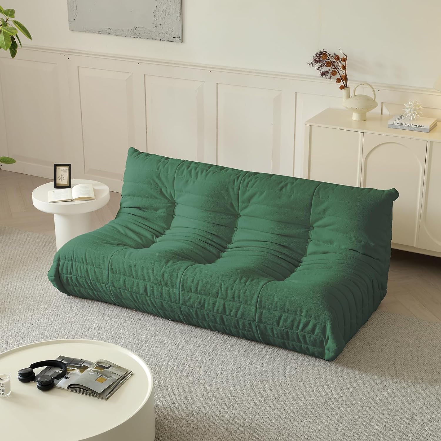 Luxury Sofa Couch Chair, Lazy Floor Seating, Fireside Bean Bag Chair, Ergonomic Tatami Sofa Lounger for Living Room, Bedroom, Office, 3 Seat, Green