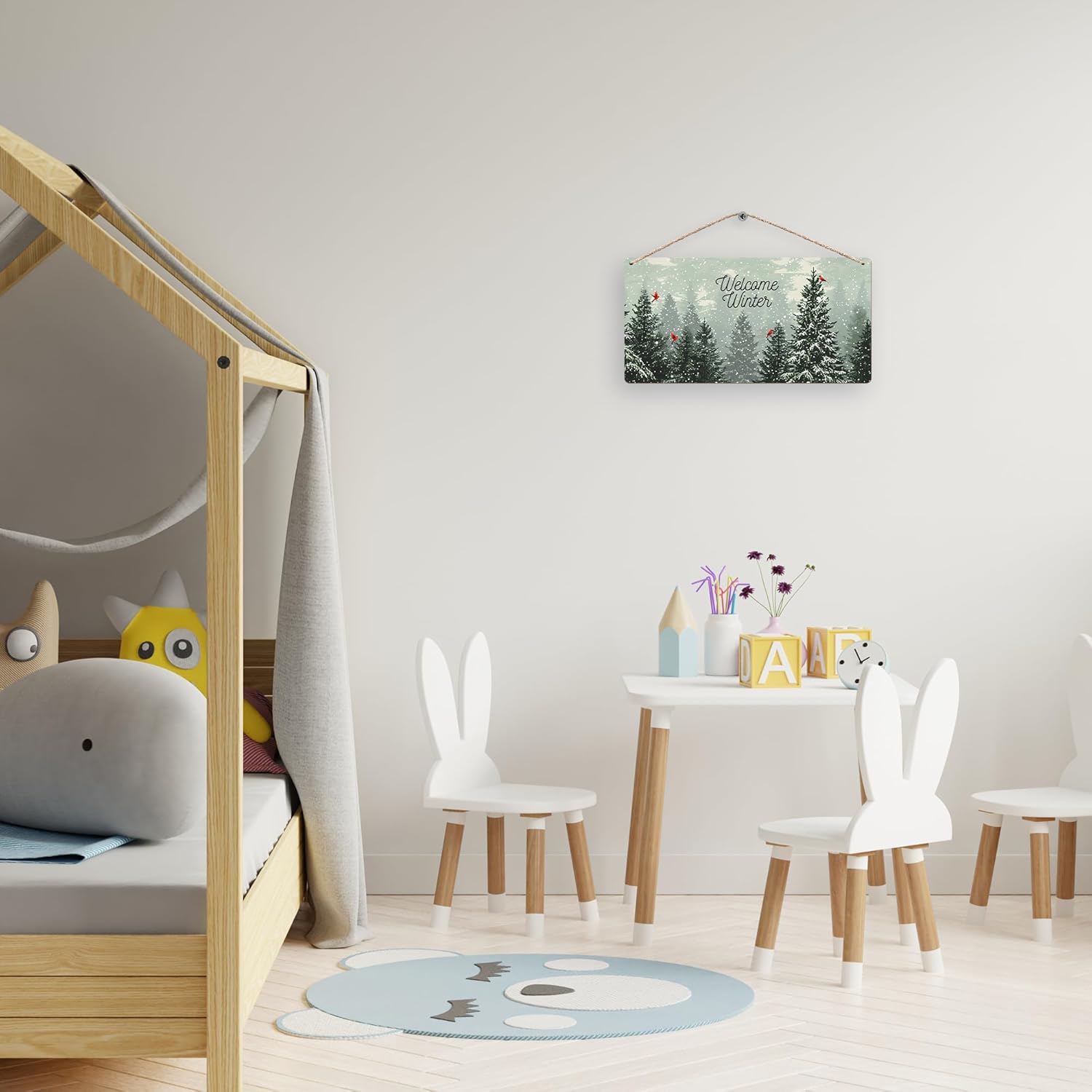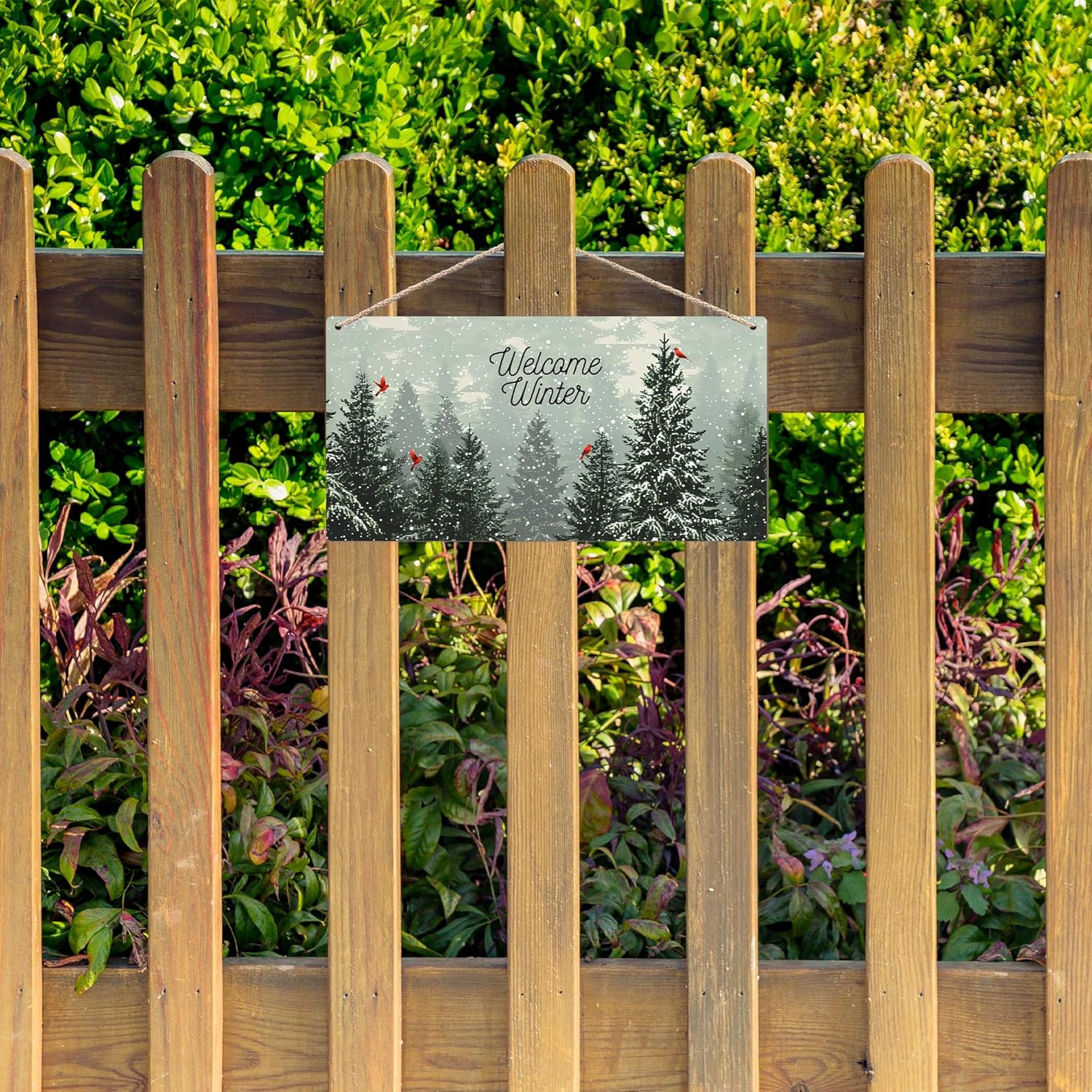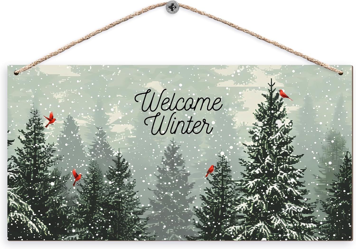 Welcome Winter Hanging Wooden Signs 12x6, Pine Tree Decor, Winter Door Decorations, Winter Door Sign, Snowflake Pine Trees Birds Home Room Office Hanging Wall Decor