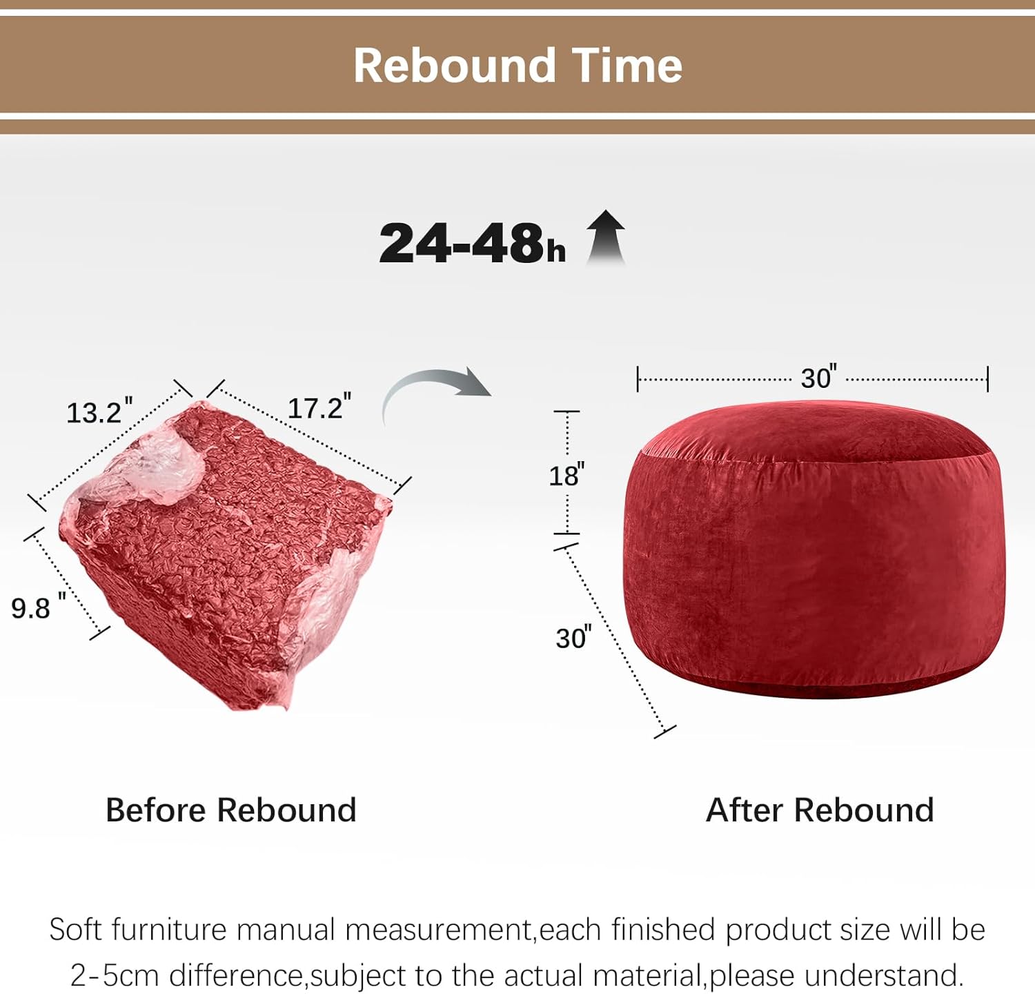 - BEAN BAG FILLER: Stuffed block-shaped memory sponge, Padding can be removed and added depending on desired comfort and ease of transport. Different from foam,the high-rebound sponge is still comfortable and does not sag even after sitting for a long time. Due to its compression upon arrival, it may be necessary to wait for the sponge to become fluffy and fully rebound.
